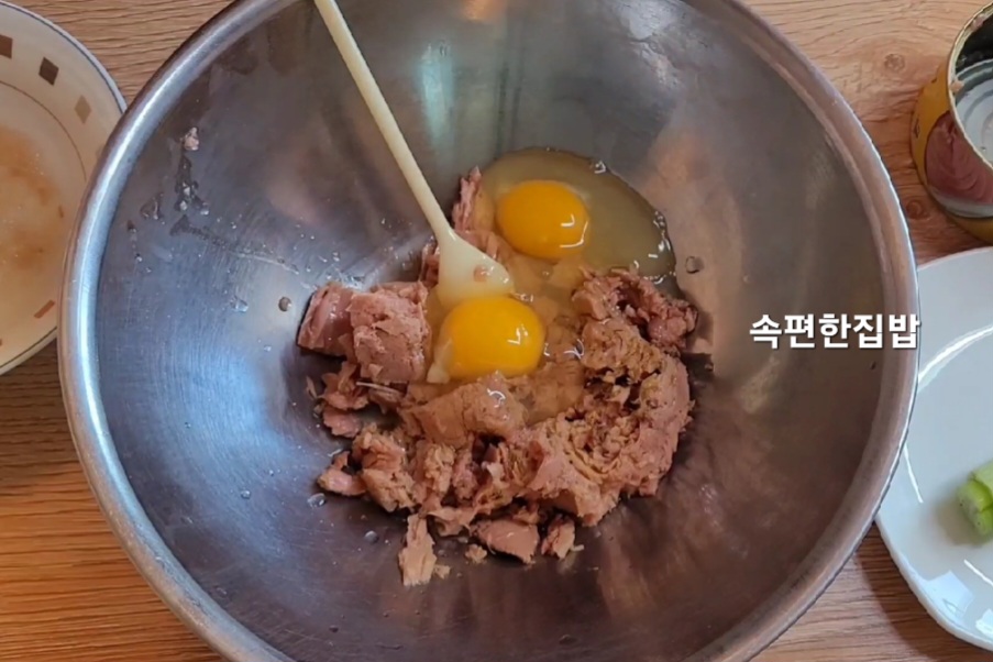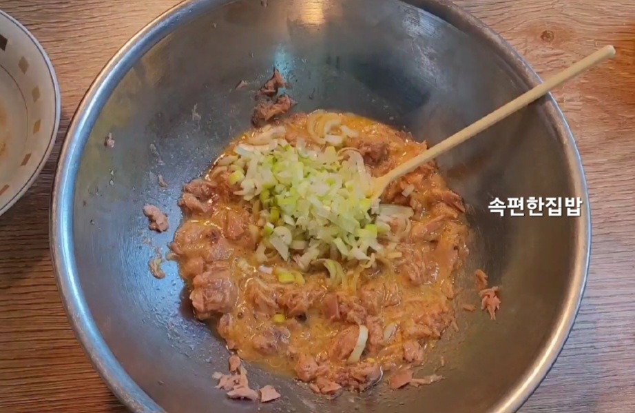 다진 대파를 참치와 잘 섞어주세요.