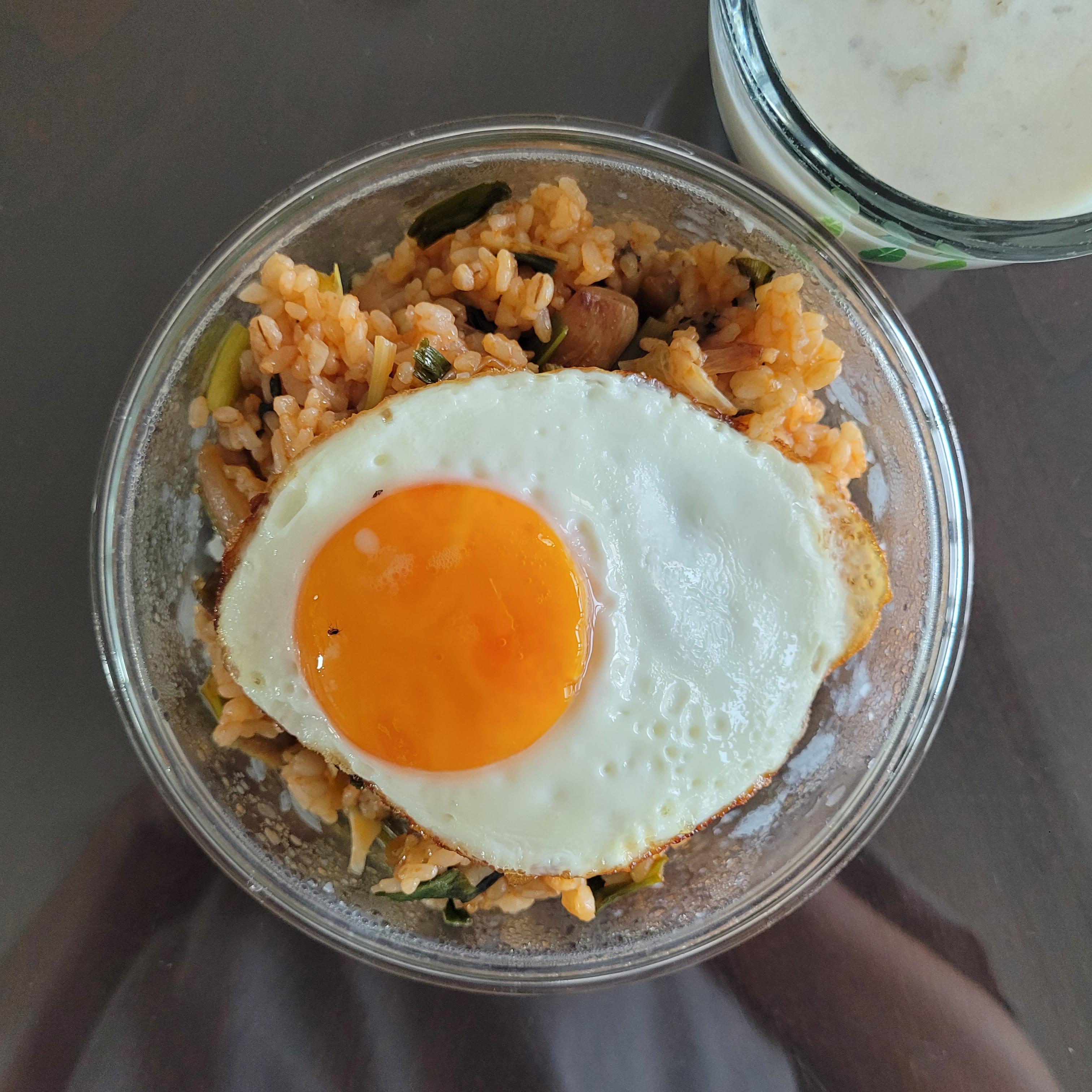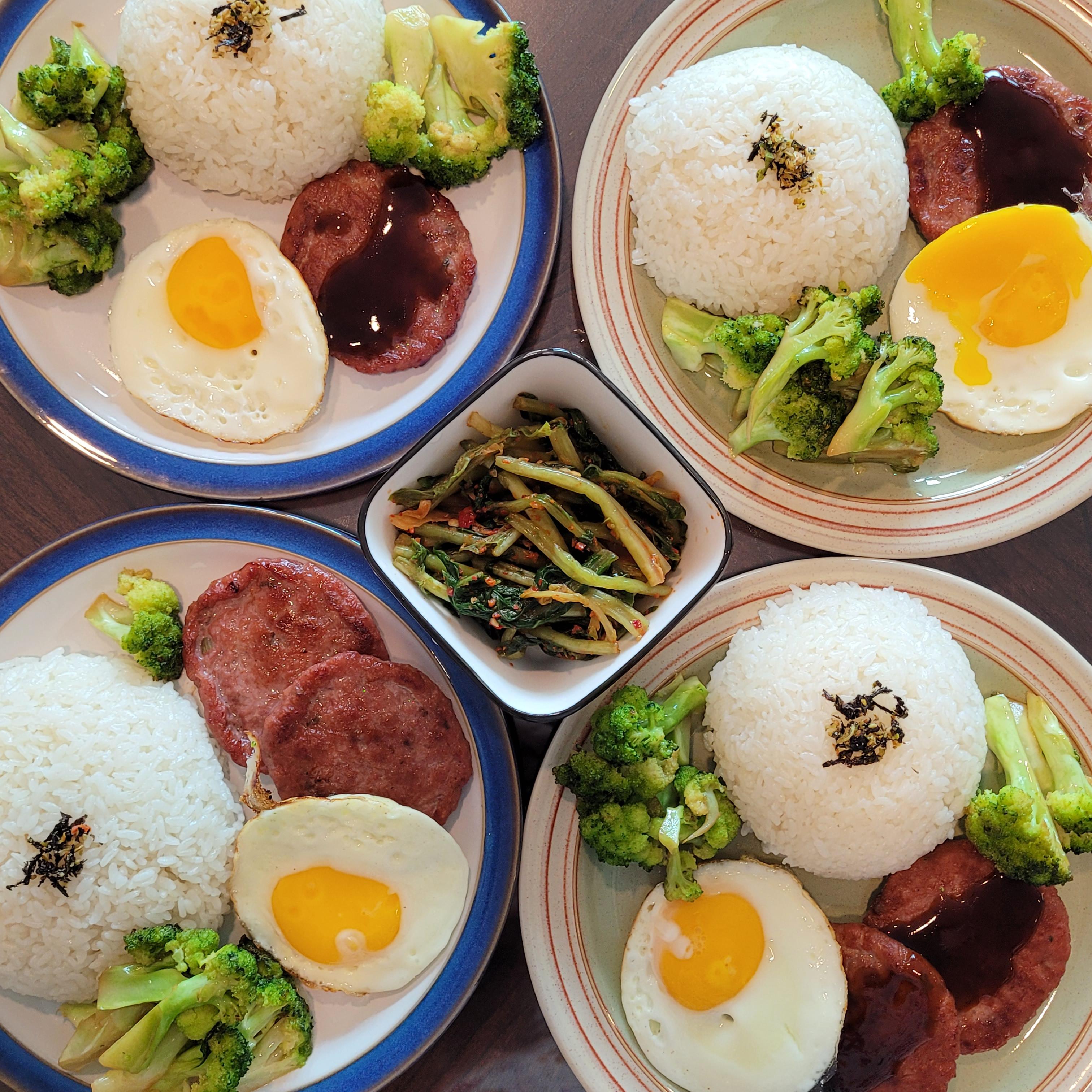 *떡갈비, 계란프라이, 브로콜리, 해물 플레이크,