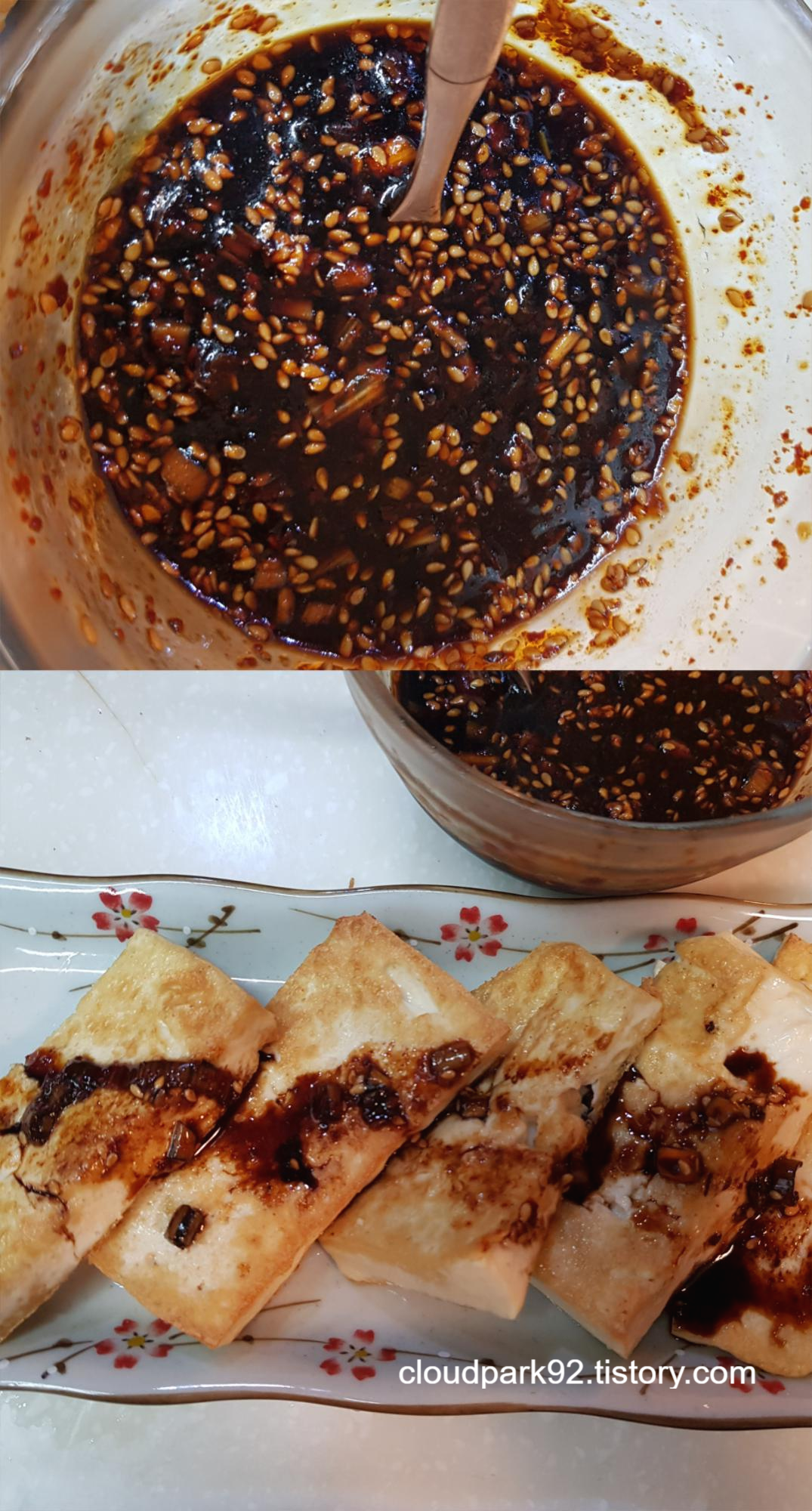 구운 두부에 양념장을 뿌려주고요