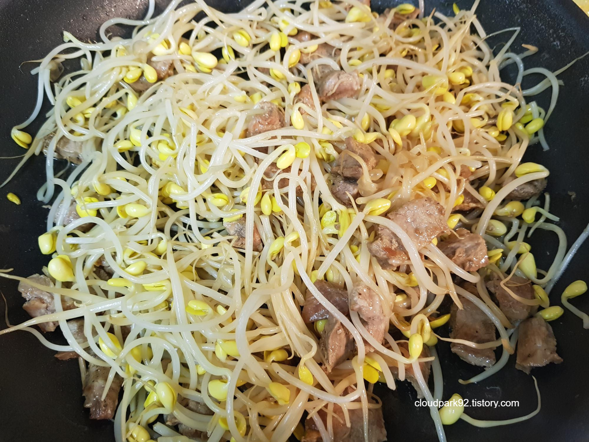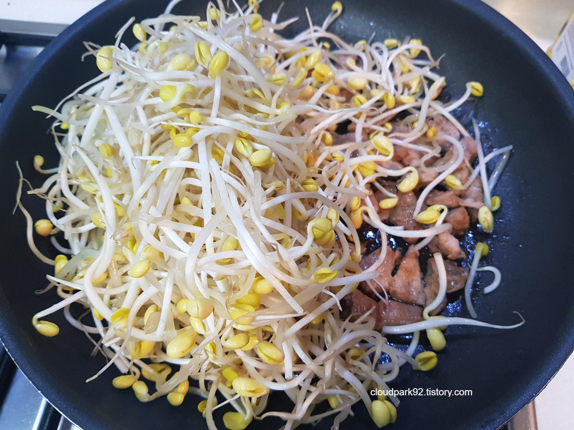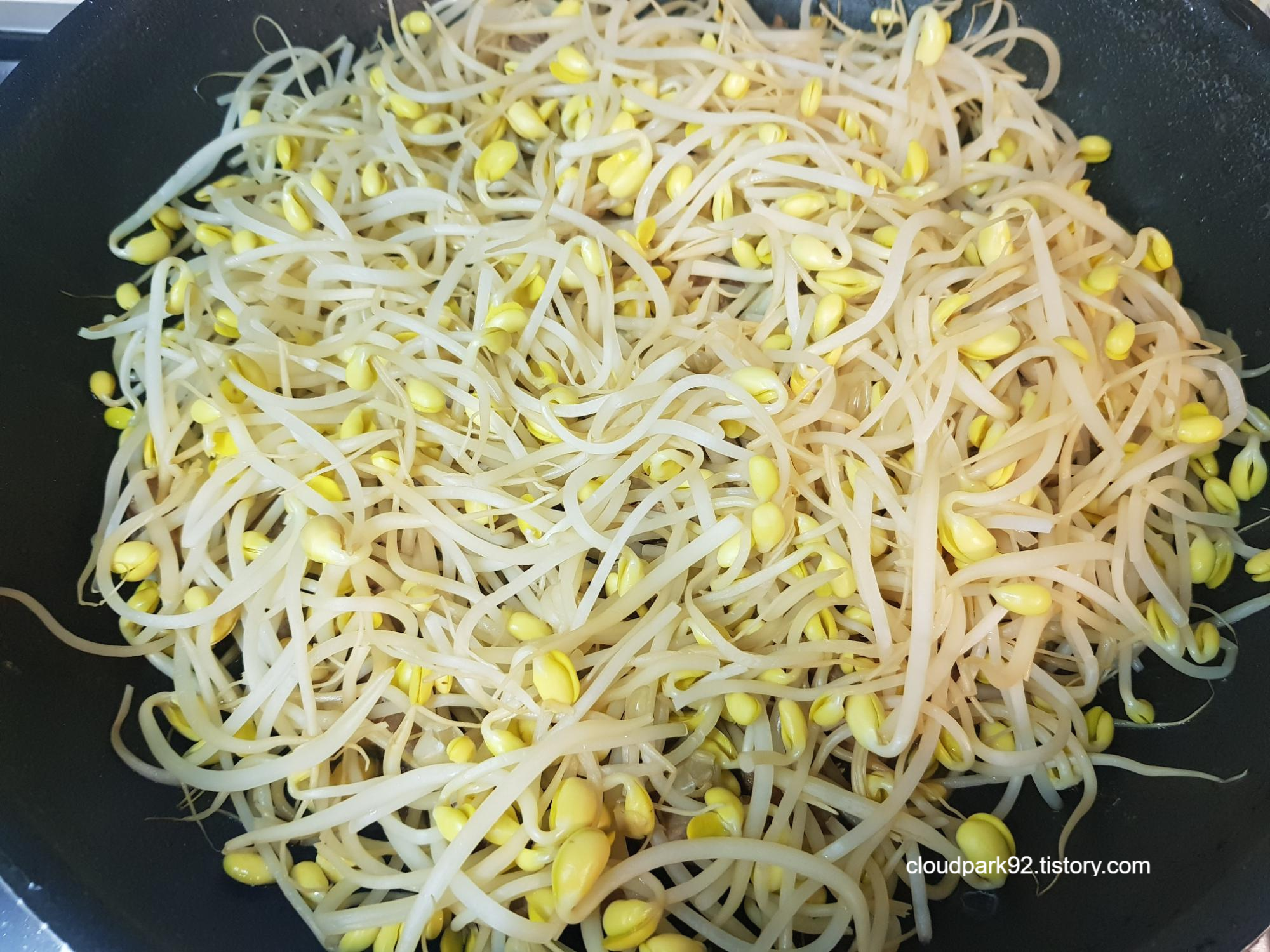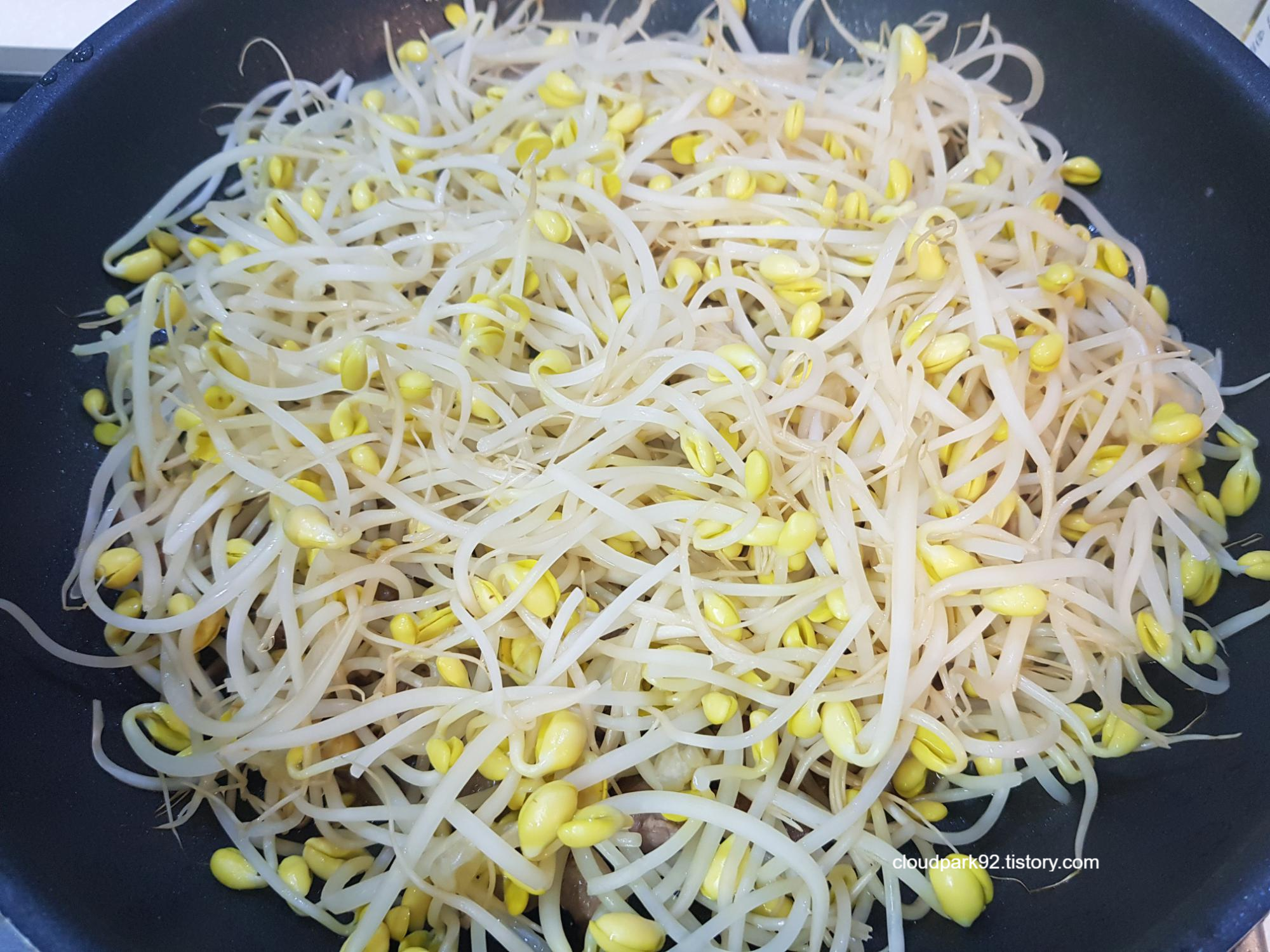 뚜껑을 덮고 6-7분 정도 중 약불에서 익혀요(콩나물 양에 따라 익히는 시간을 조절해요)
