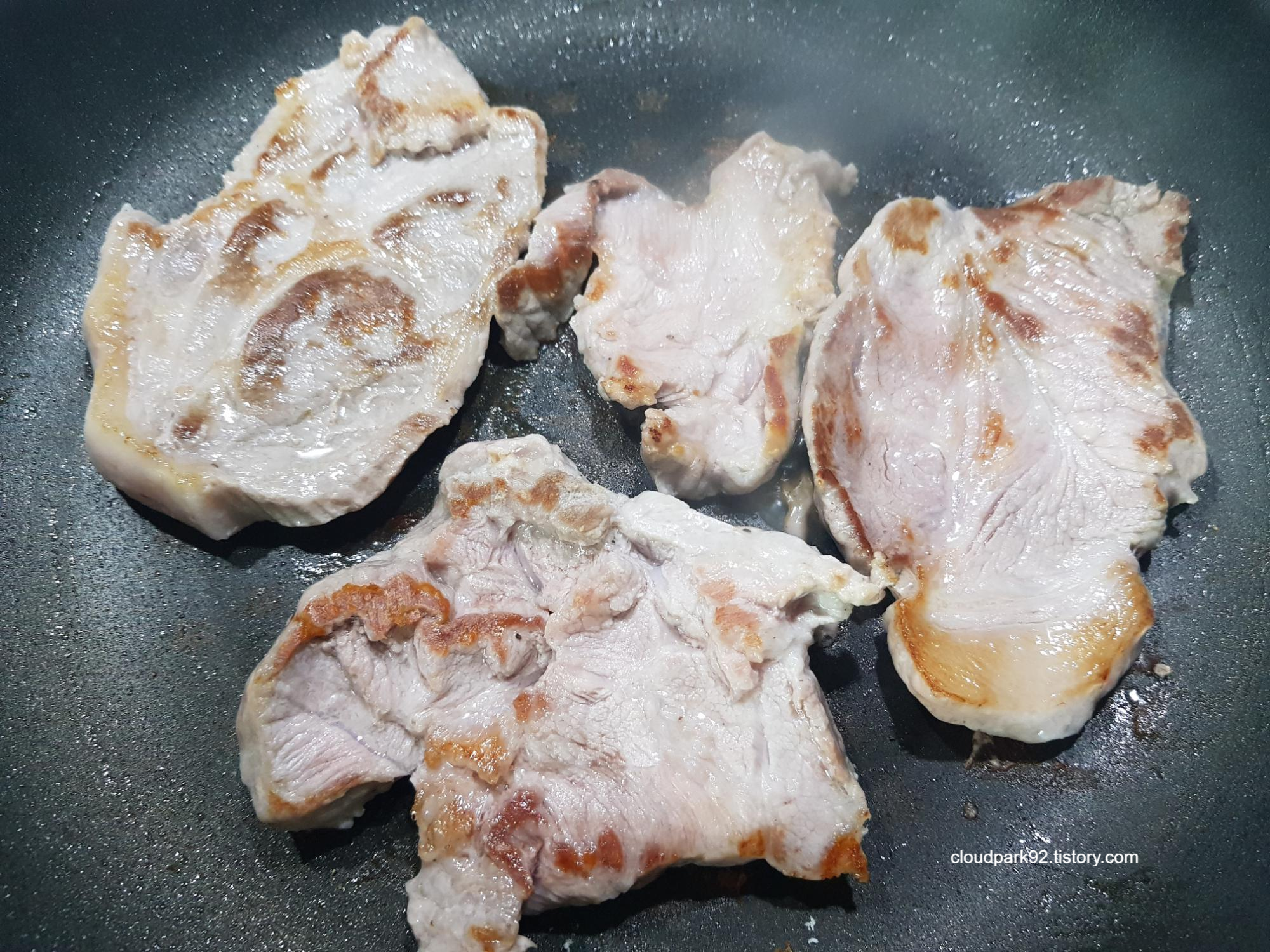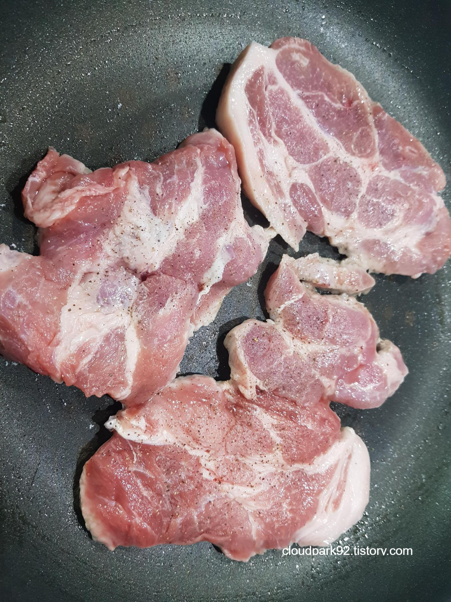 팬에 고기를 구워줘요