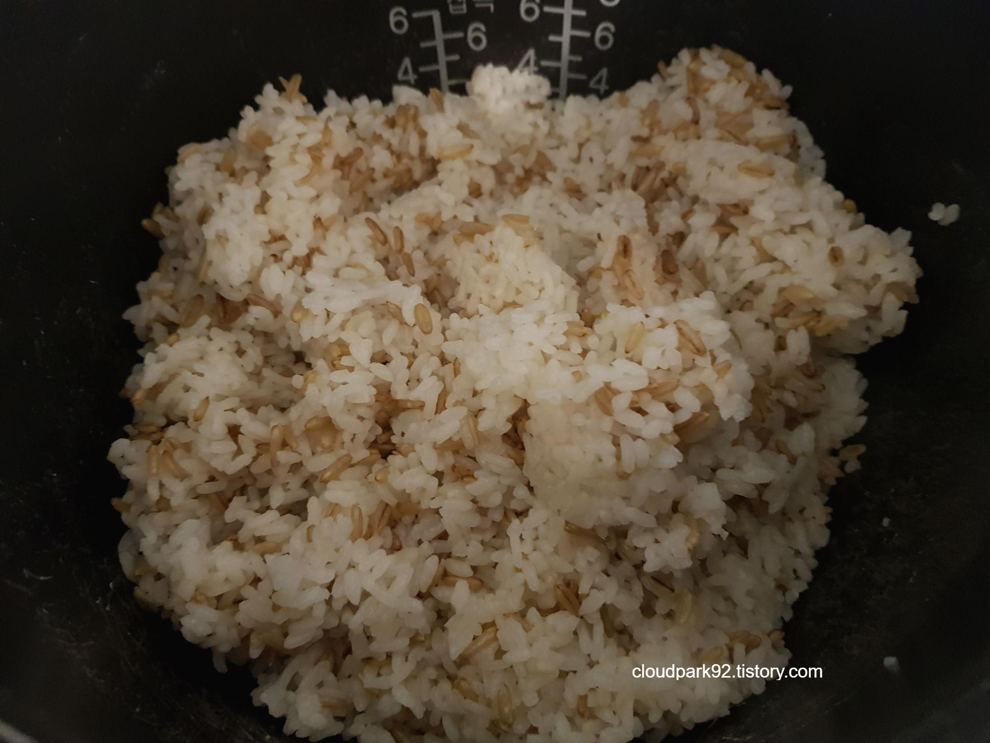 주걱으로 젓지 말고 그대로 뚜껑만 닫아 놓고 익히는 거예요