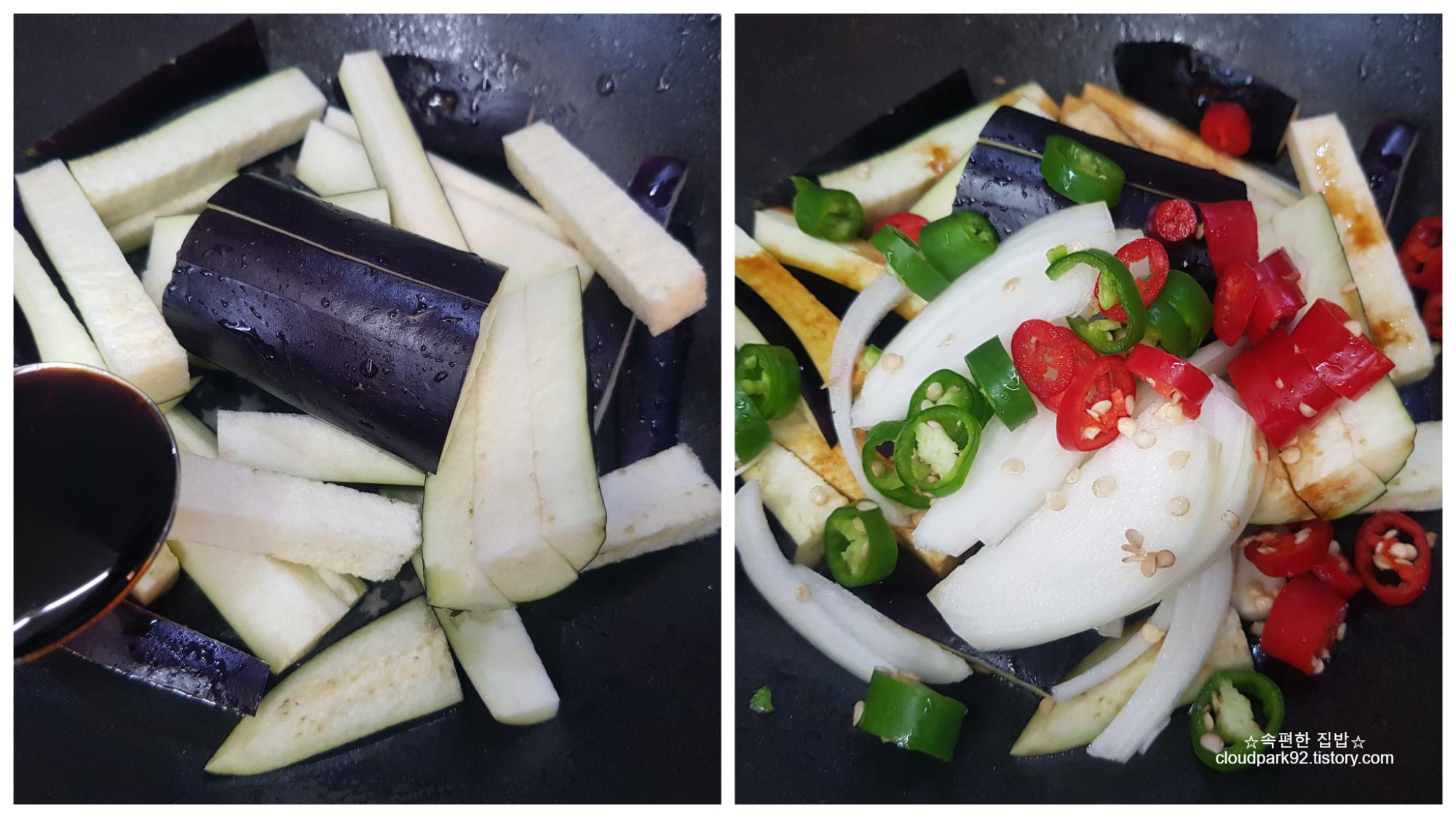 재료: 가지, 양파, 고추, 식용유, 올리고당