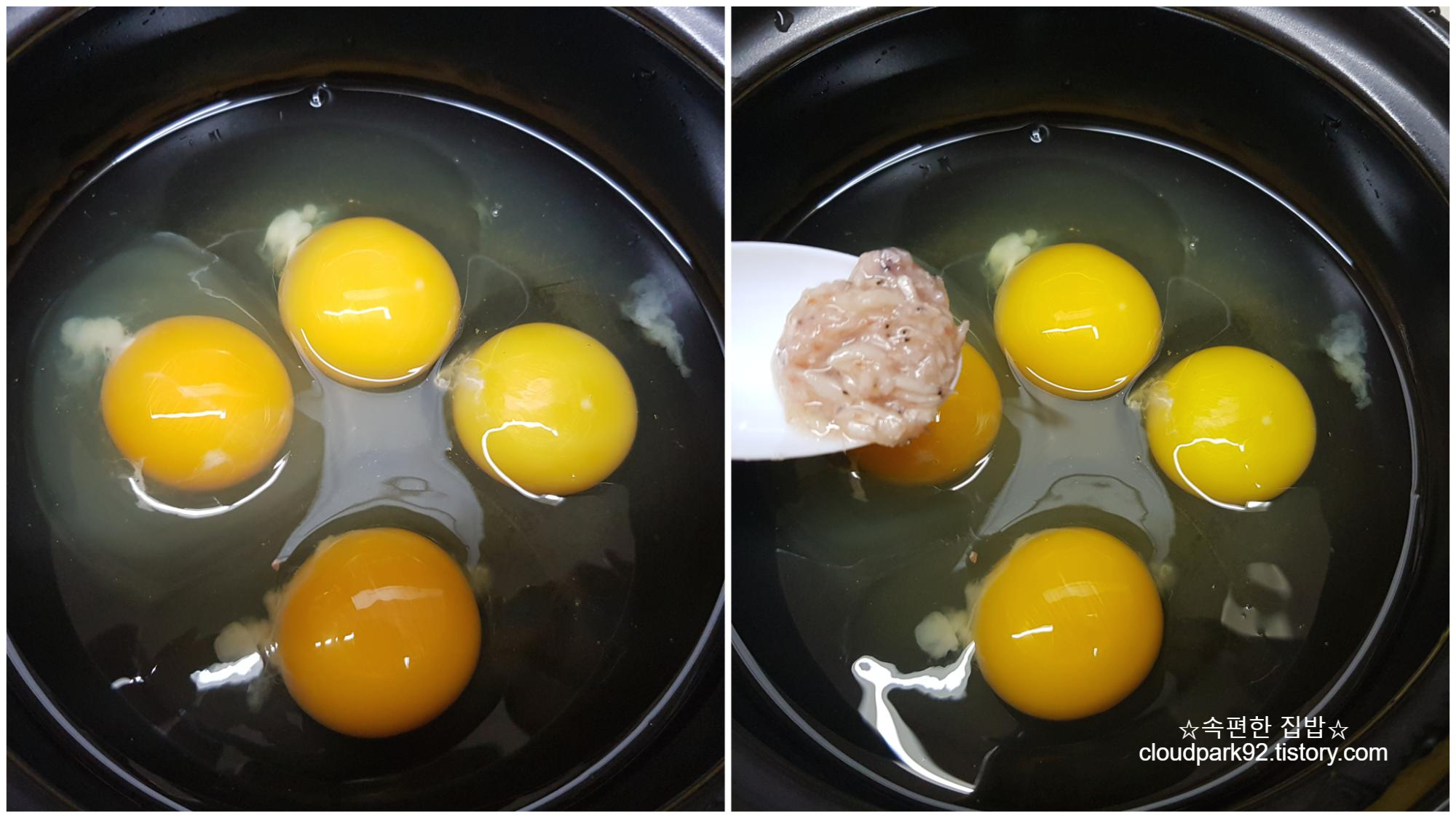 뚝배기에 계란을 4개 풀었어요
