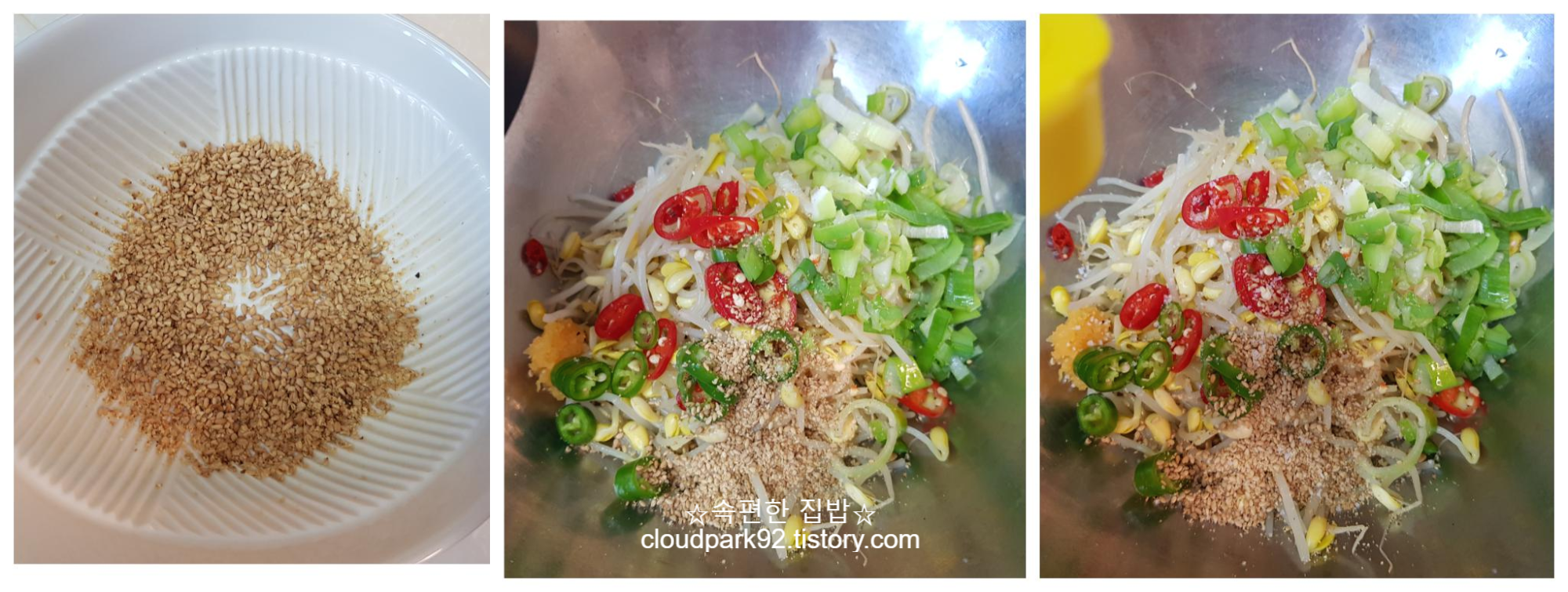 오늘 콩나물 무침은 고춧가루 없이 깔끔하게 무쳤어요