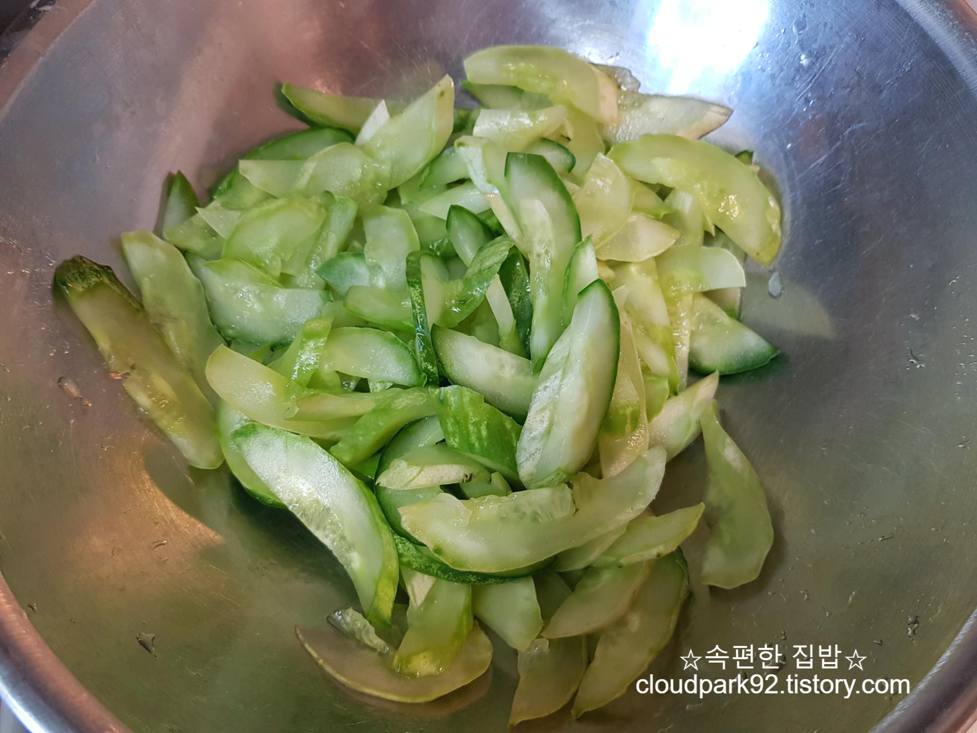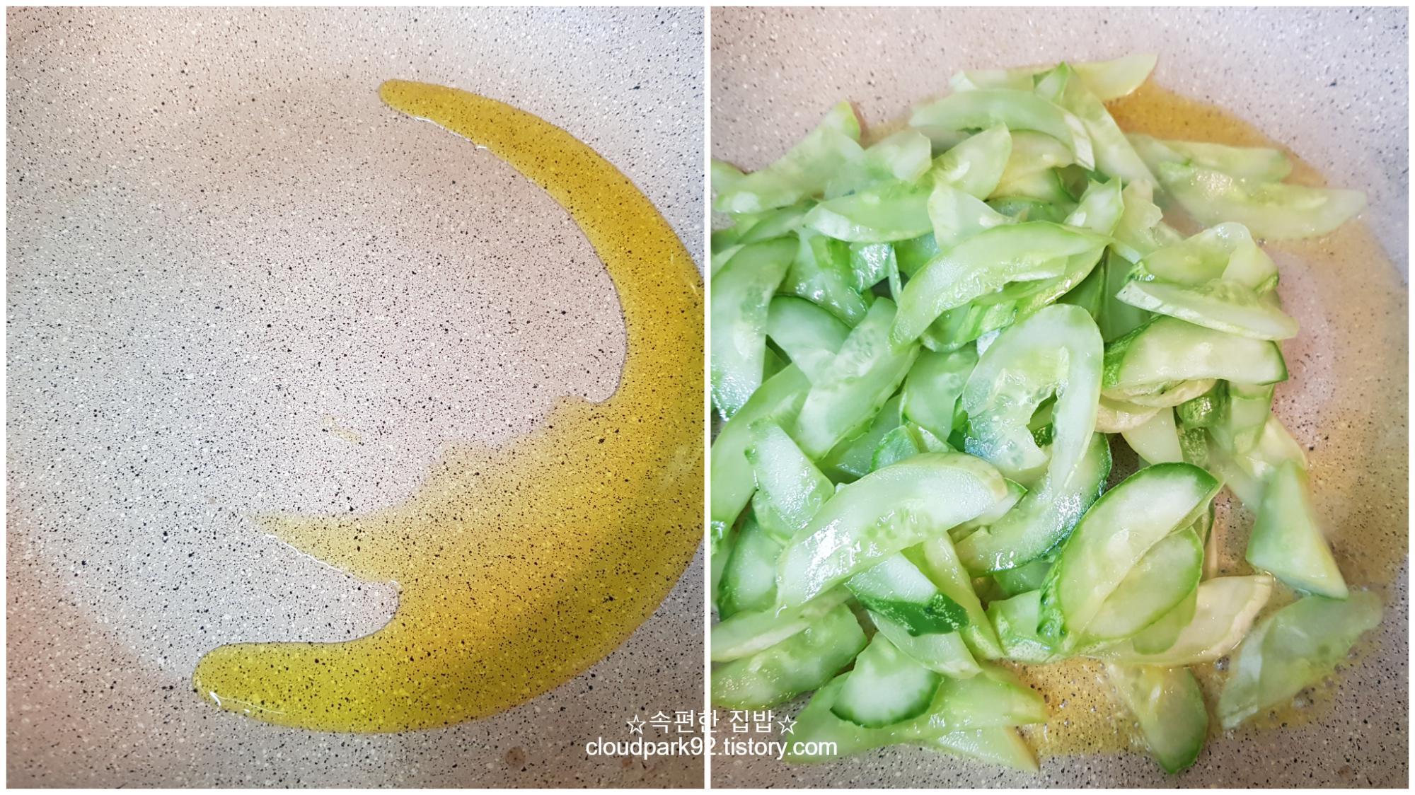 콩나물은 잠시 옆에 두고요, 오이 볶음부터 할 거예요