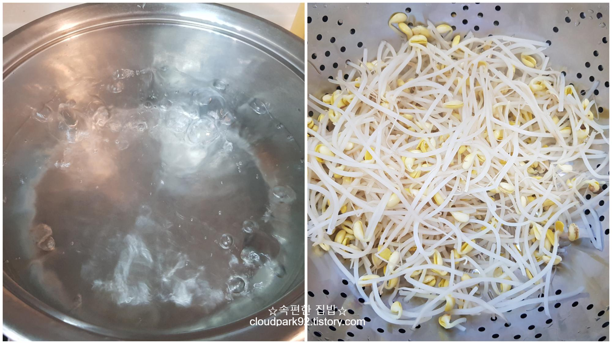 콩나물은 팔팔 끓는 물에 3분 정도 데치면 돼요