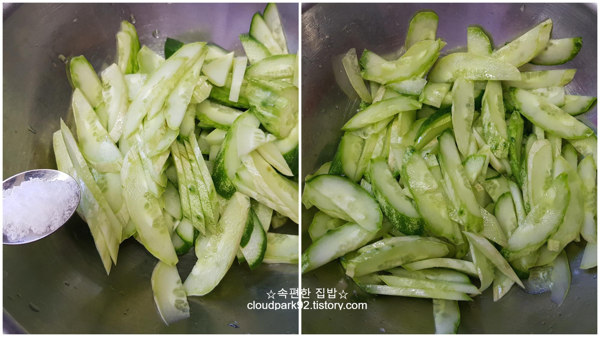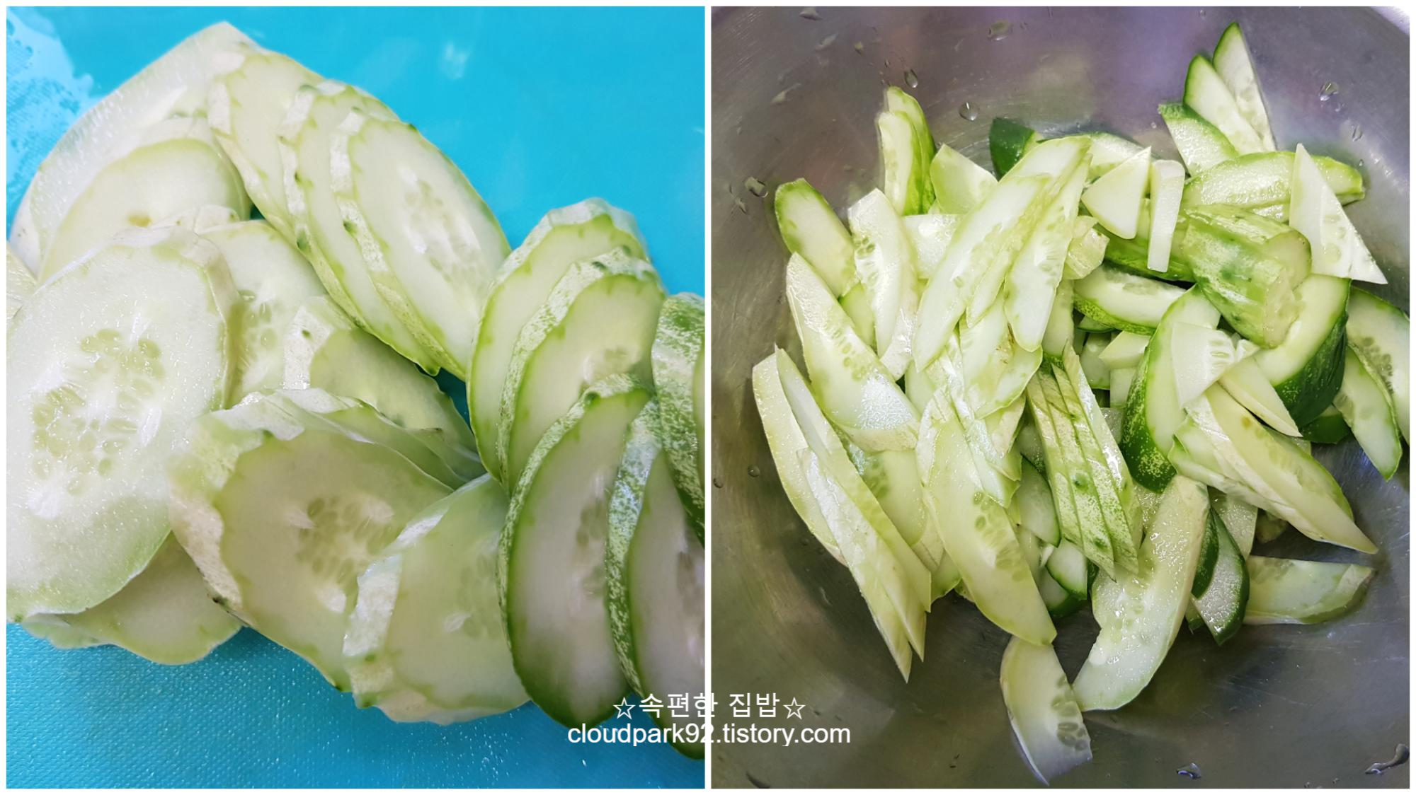 저는 오이 두 개 반을 사용했어요