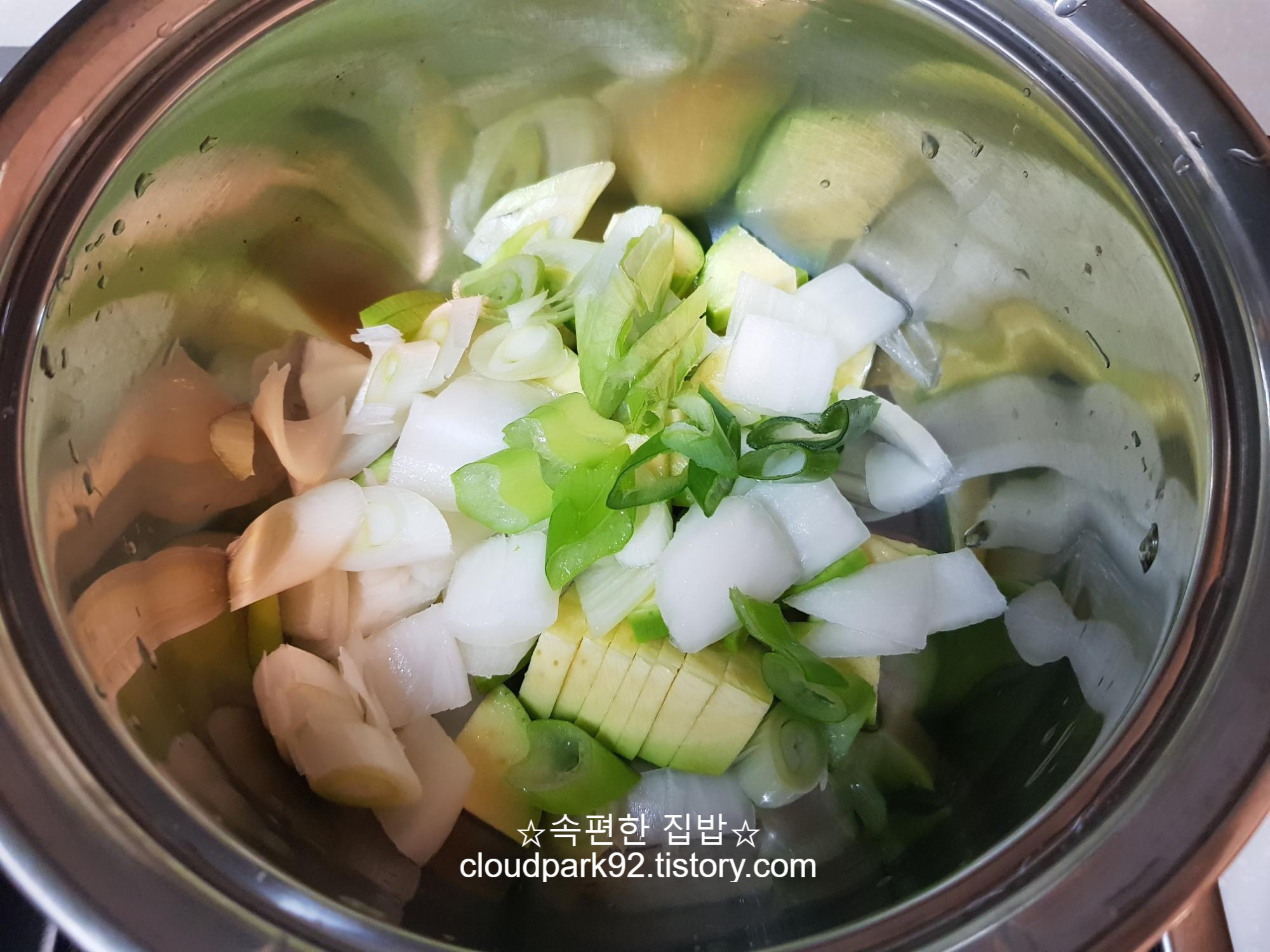 애호박을 반 개 부채꼴 모양으로 잘라 넣어주었어요