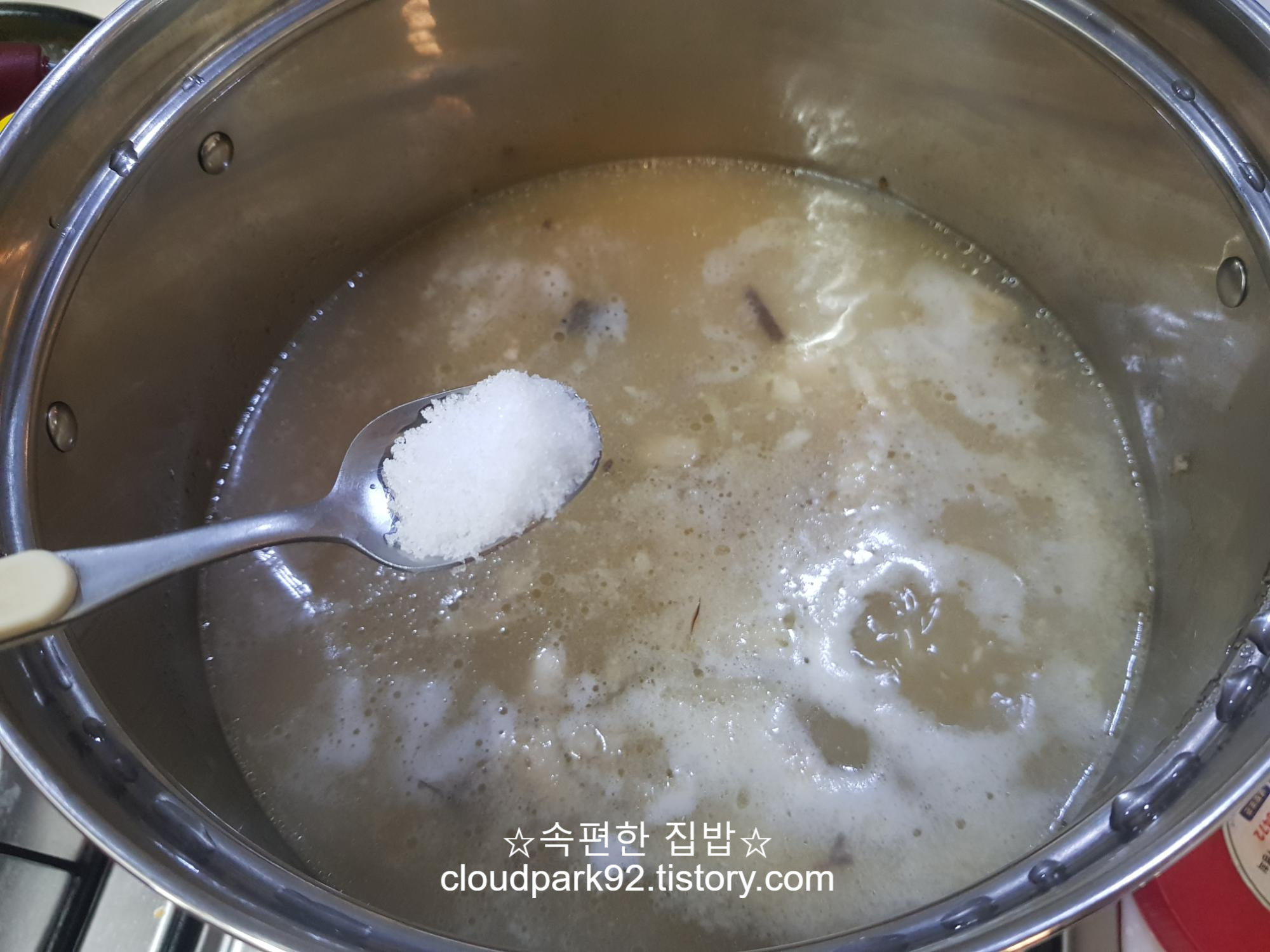 국물이 끓으면 굵은소금 반 스푼 정도 넣어 국물의 간을 살짝 하는데요