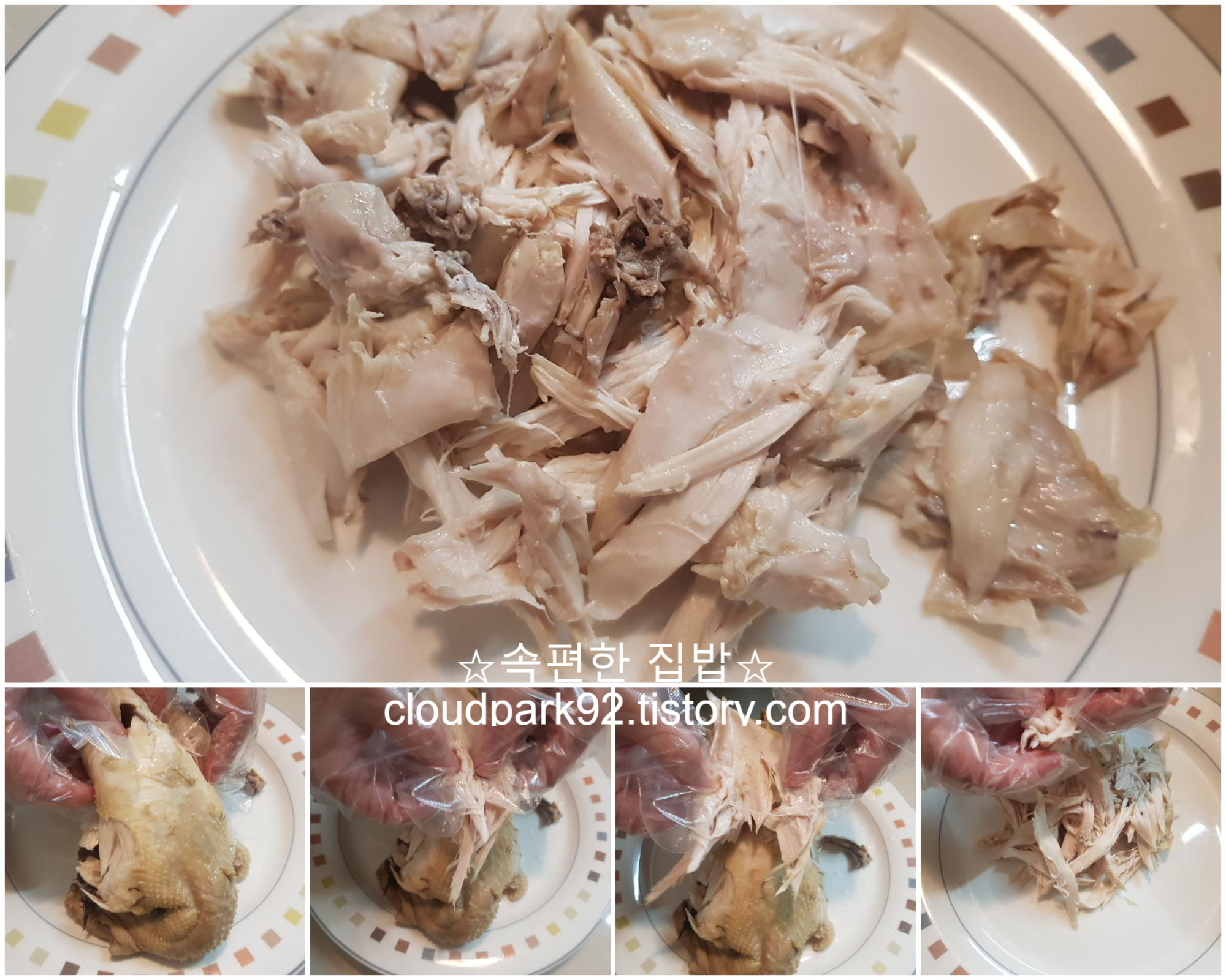이렇게 찢은 닭가슴살을 떡만둣국과 함께 끓이거나