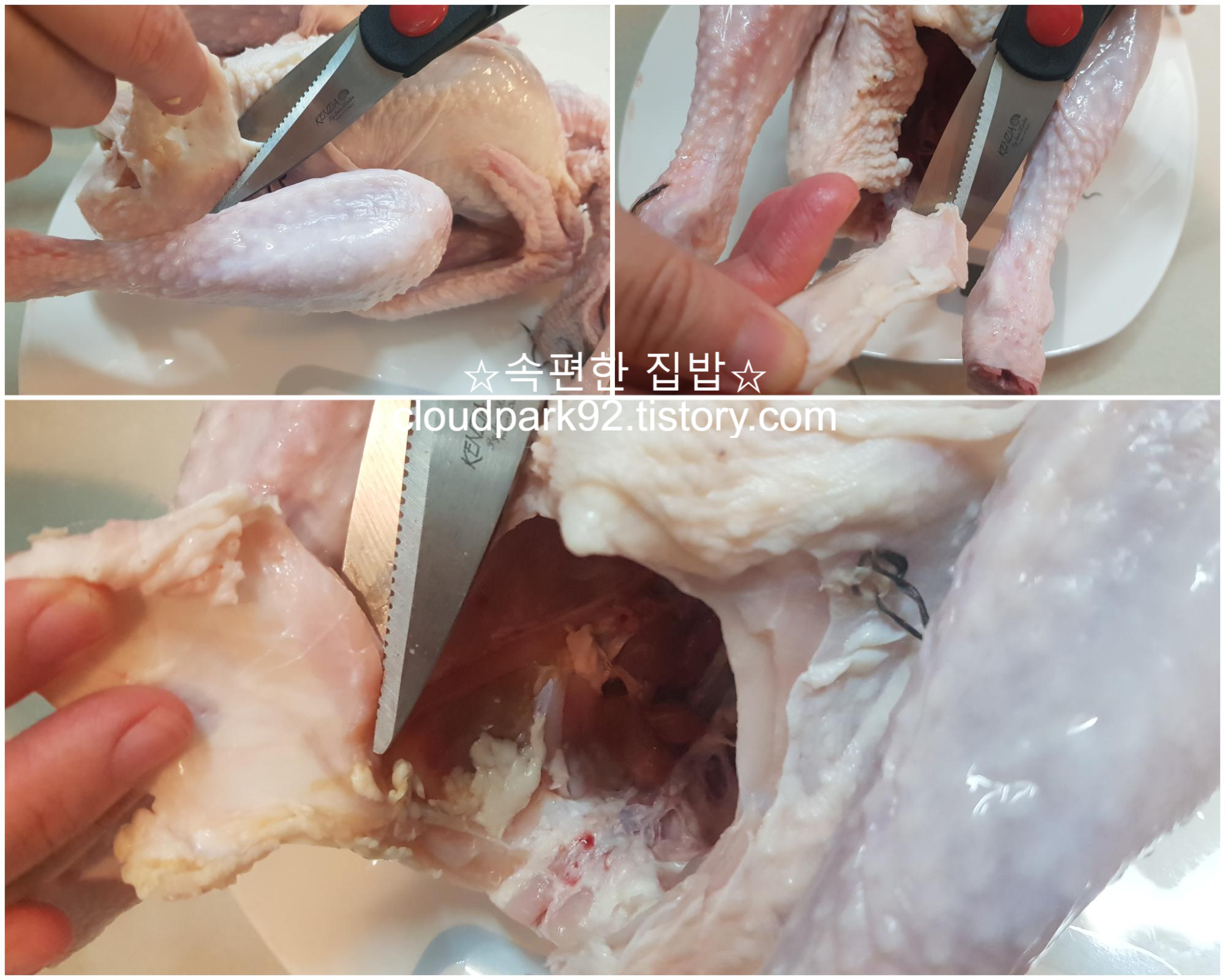 닭 꽁지 부분을 잘라 제거해 주어야 닭 특유의 누린내가 안 나요