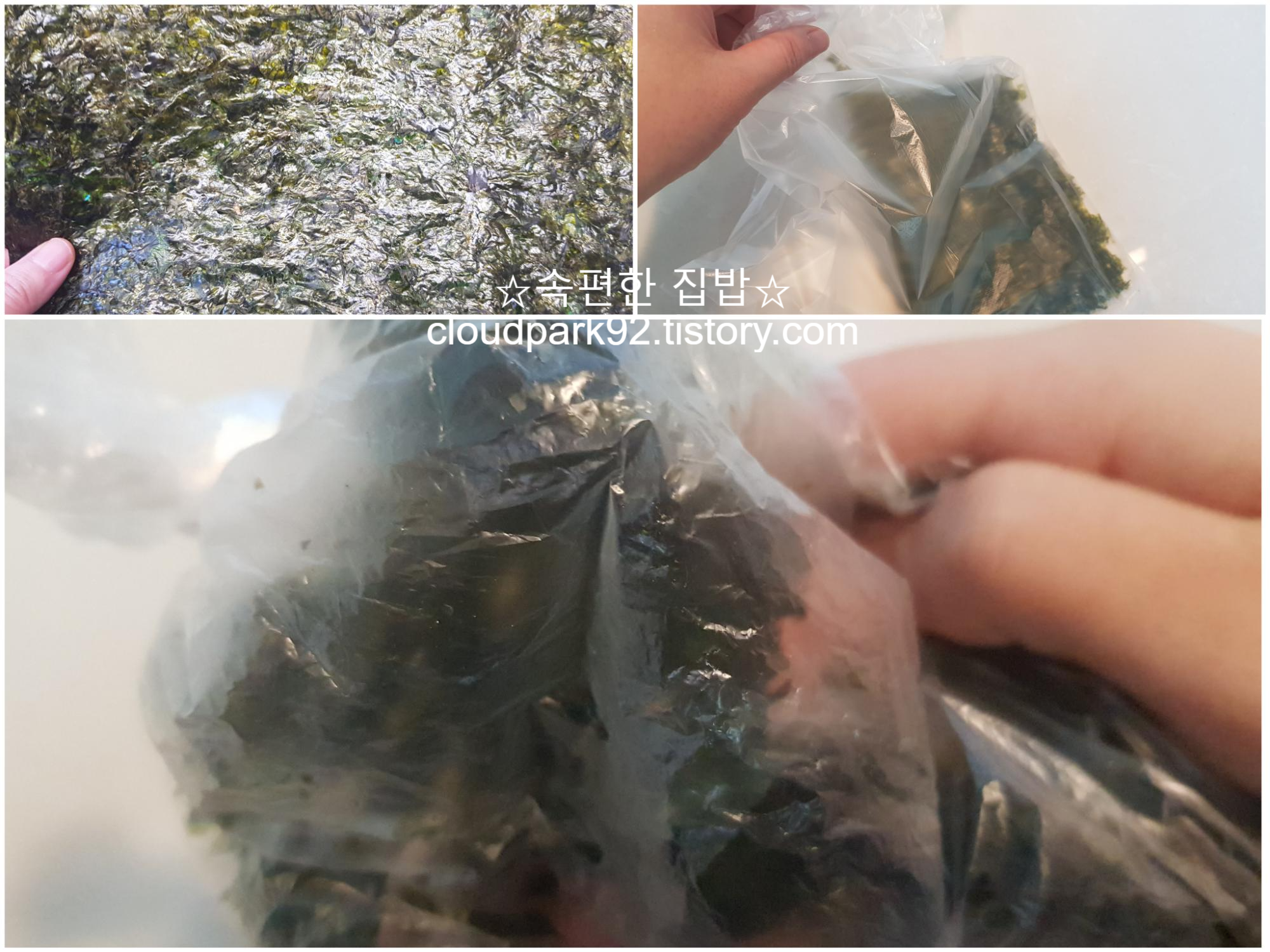 집에 있는 구운 김을 비닐에 넣고 부셔주었어요