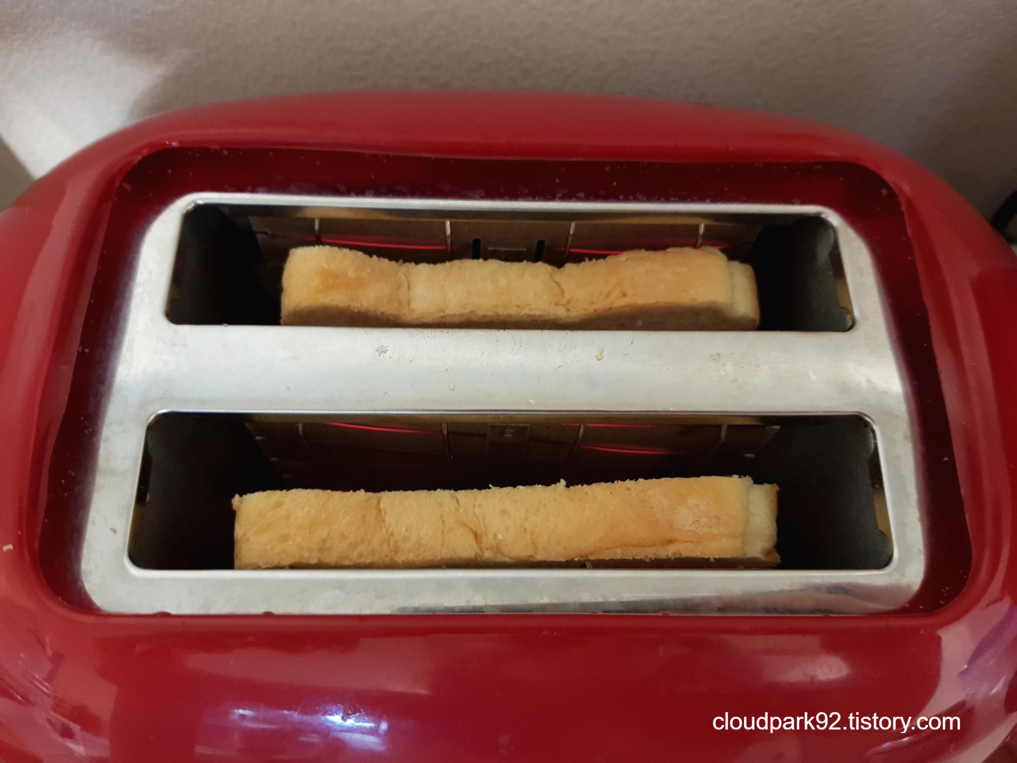 계란을 다지는 동안 식빵을 적당한 굽기로 굽고요.