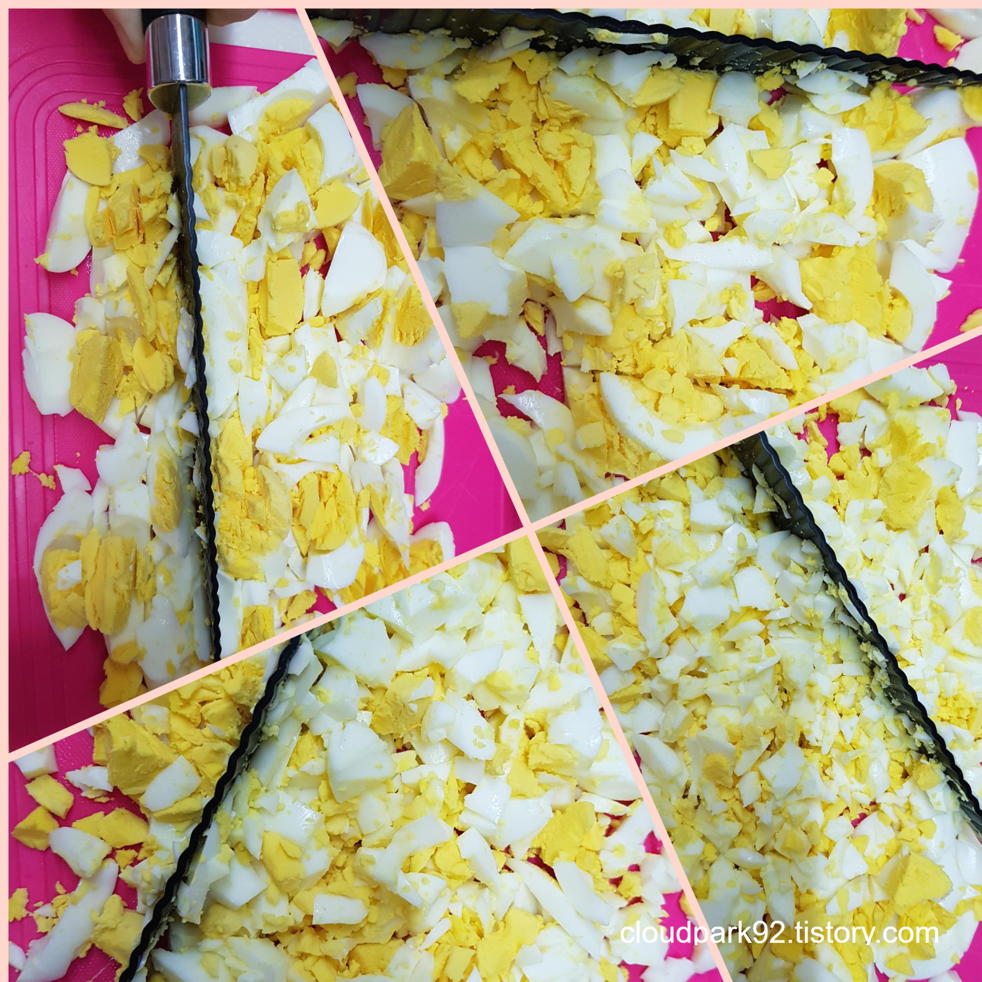 삶은 계란을 칼로 다져 주고요.