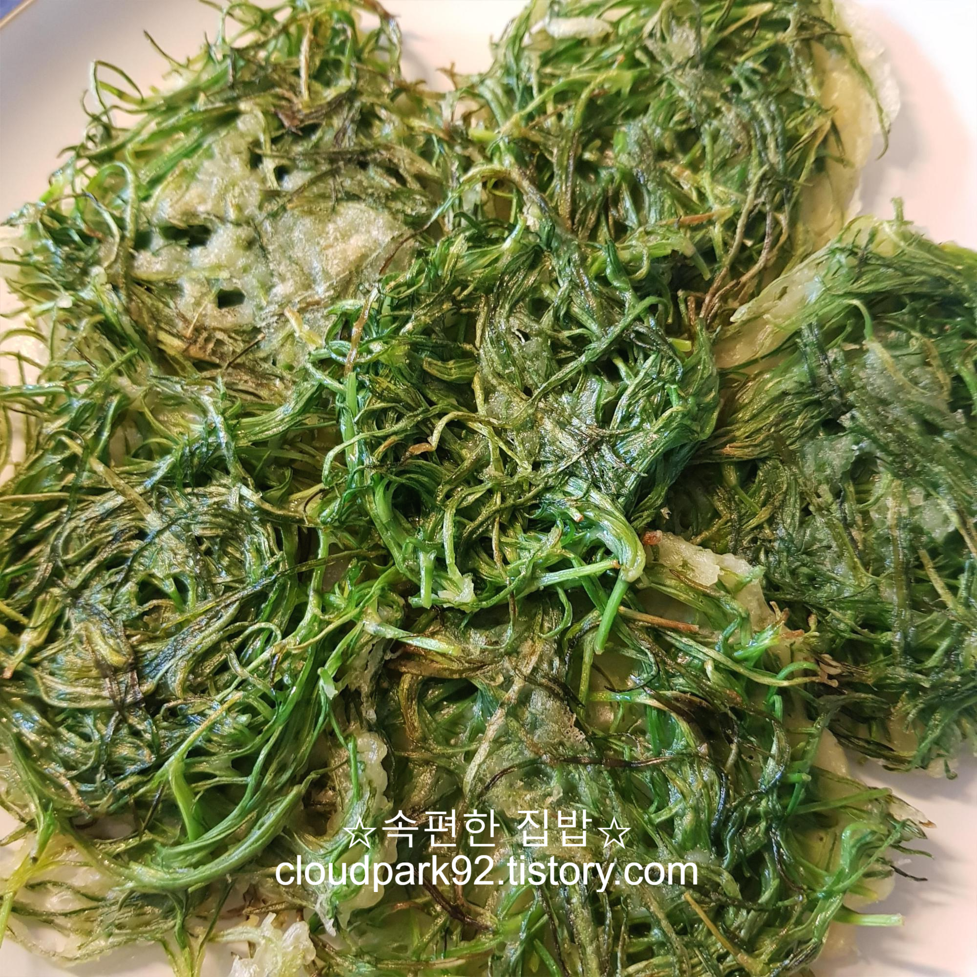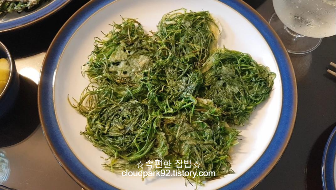 세발나물 전도 먹음직스럽게 잘 부쳐졌어요.