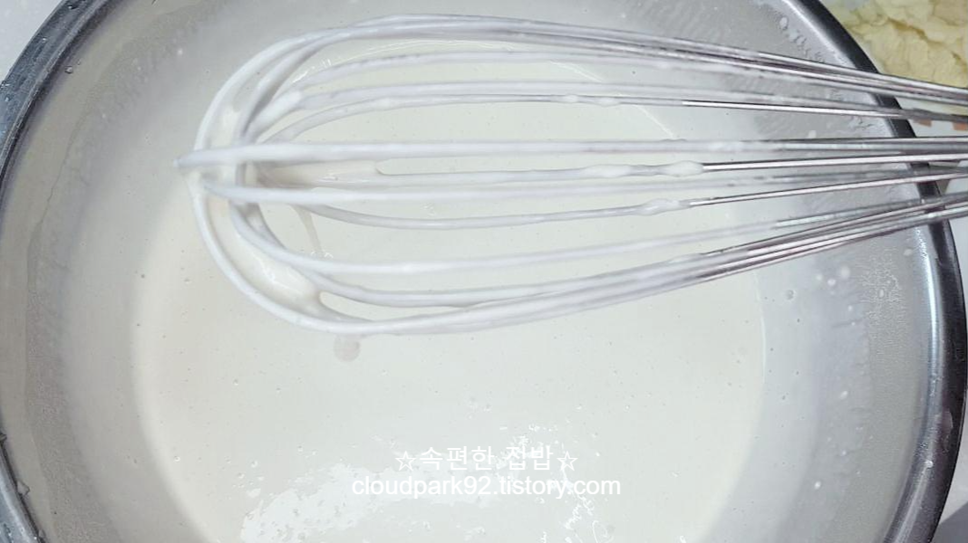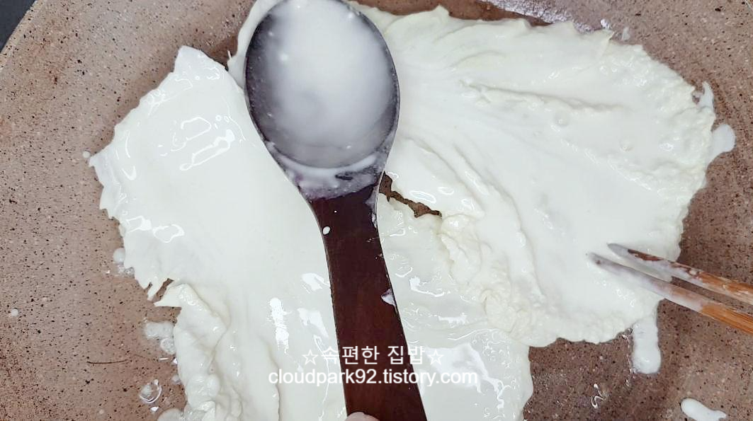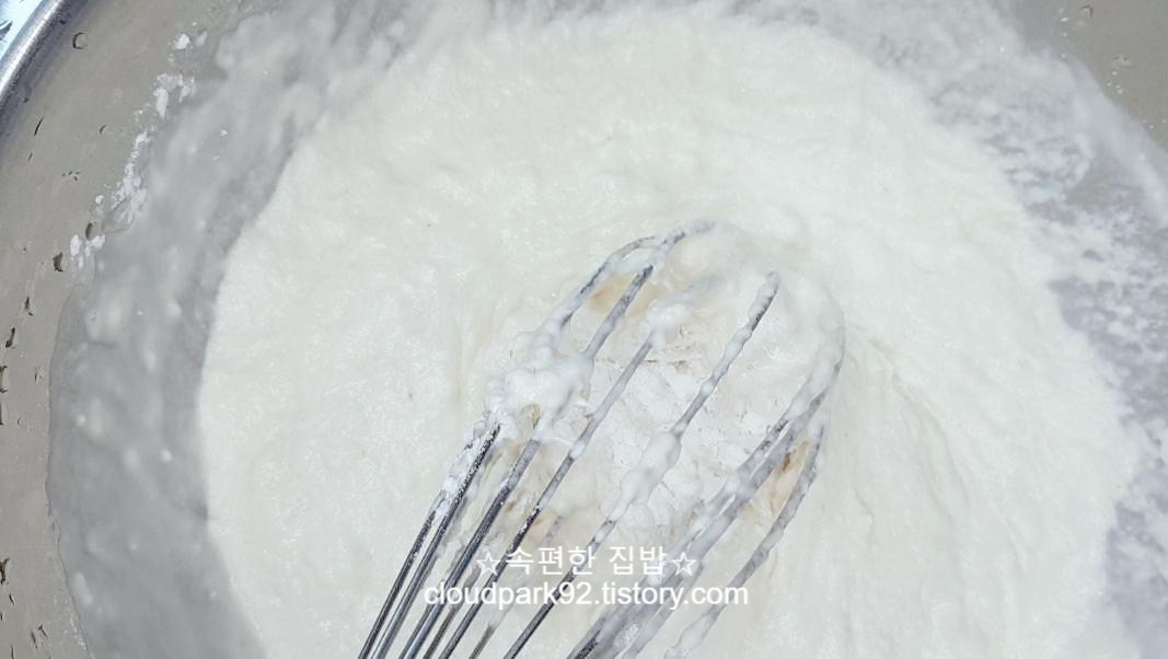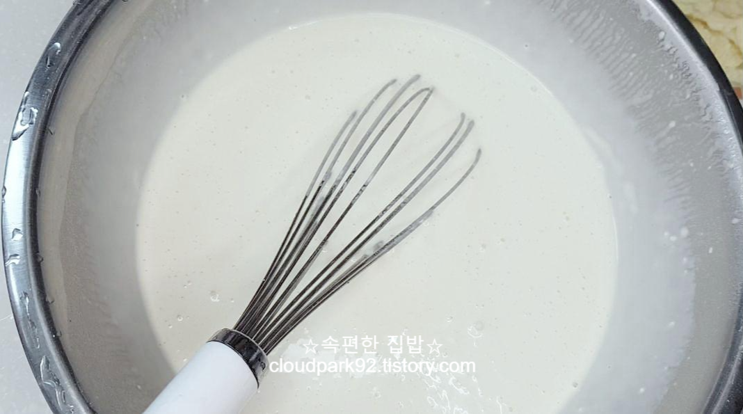 반죽의 농도를 보며 나눠서 넣어주시는 게