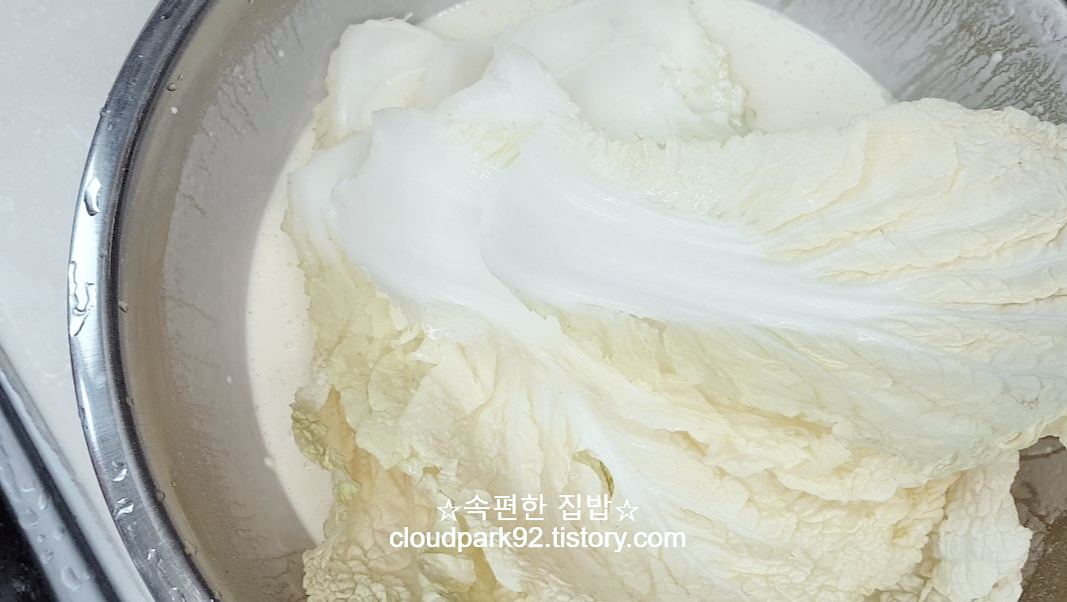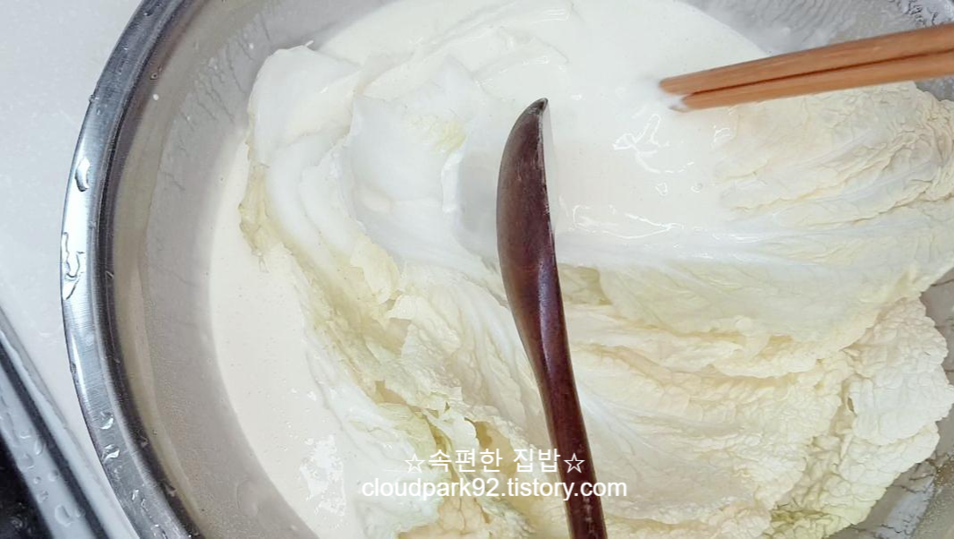 반죽을 배추 앞뒤로 발라 주세요.
