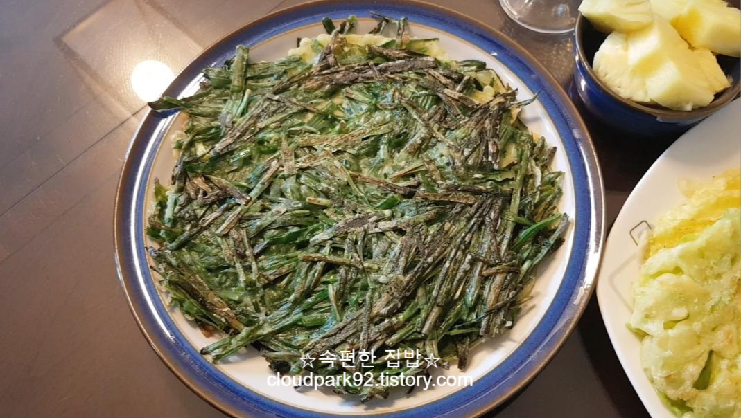 저는 반죽에 부추를 꽉 차게 넣어서 부치는 것을 좋아해서