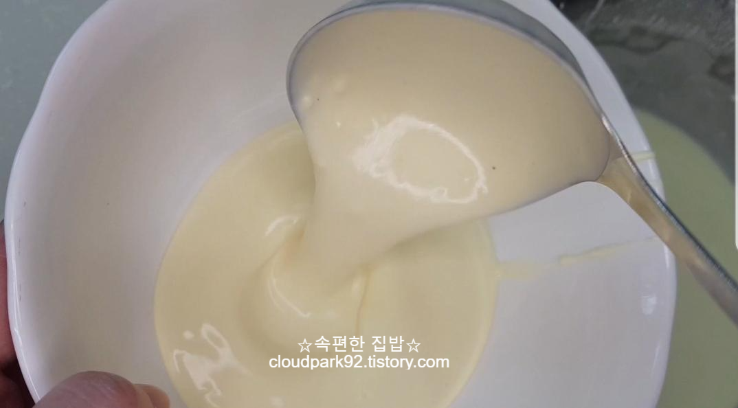 저을 때 뻑뻑한 느낌이 들지 않는 정도가 적당해요.