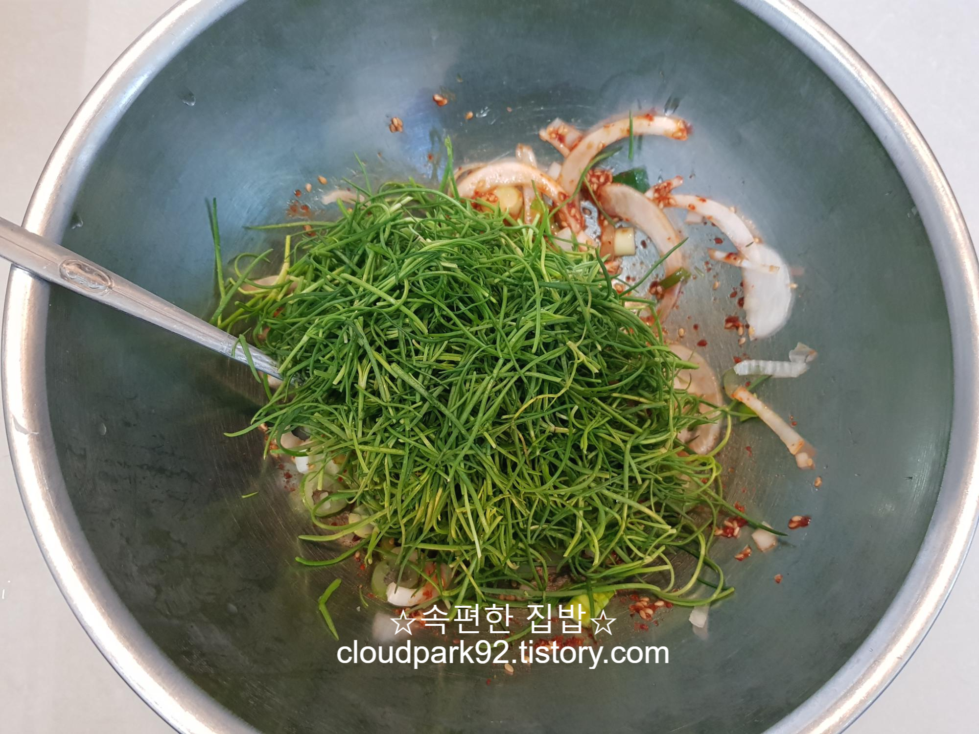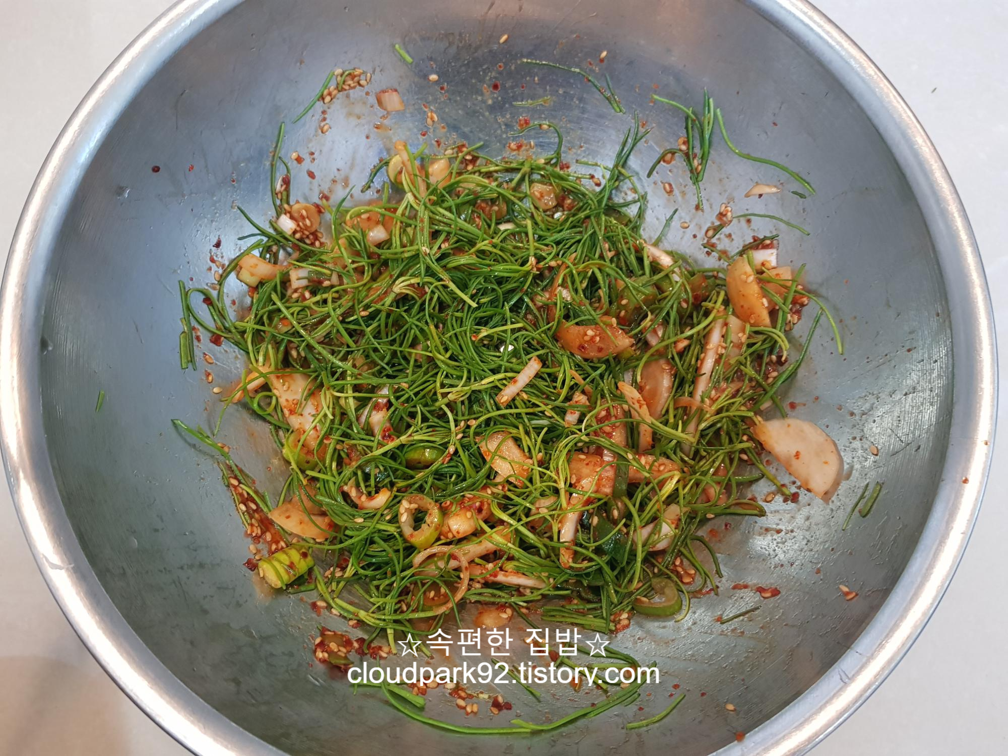 세발나물을 넣고 함께 살살 버무려 주면 끝입니다^^