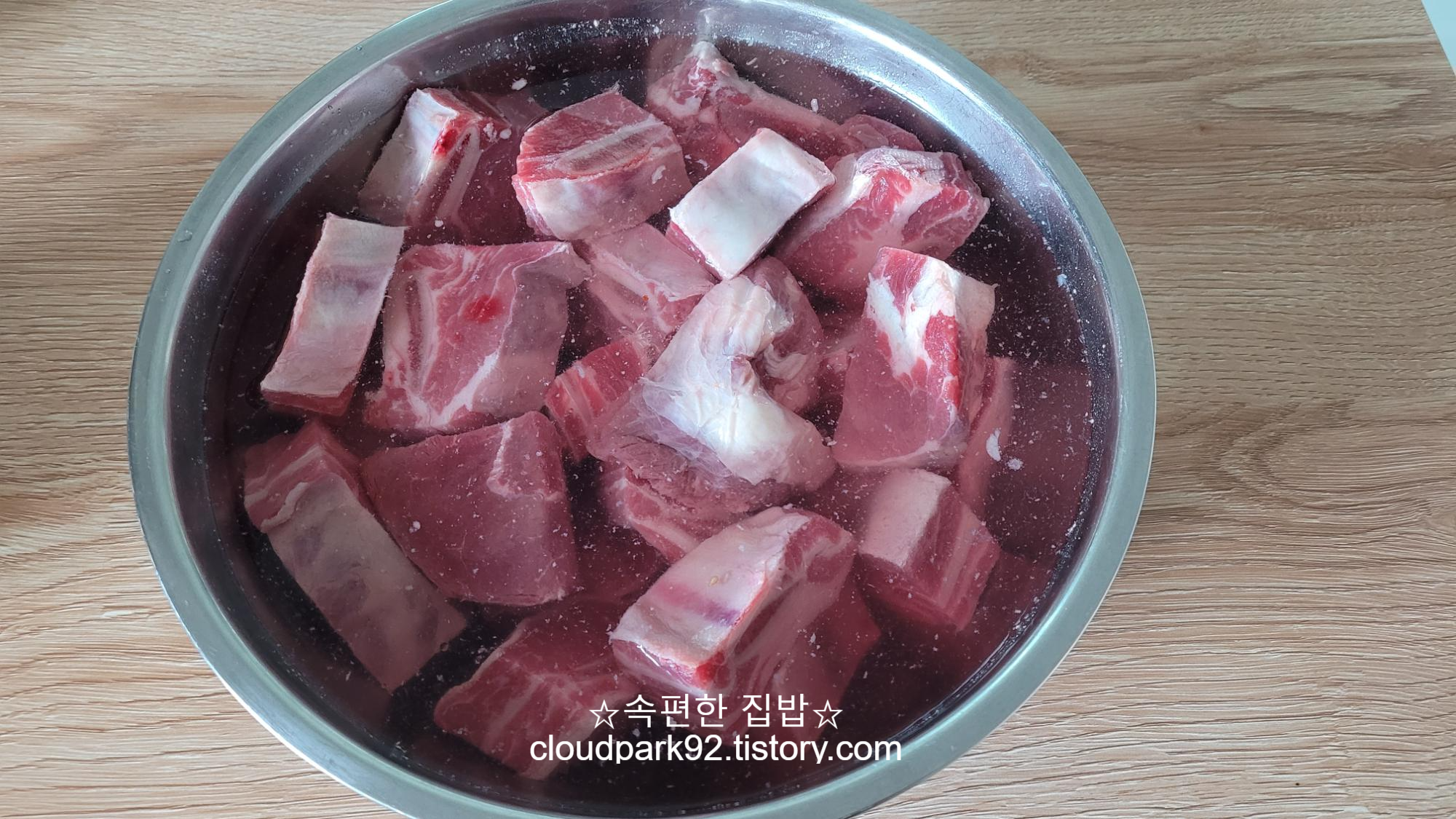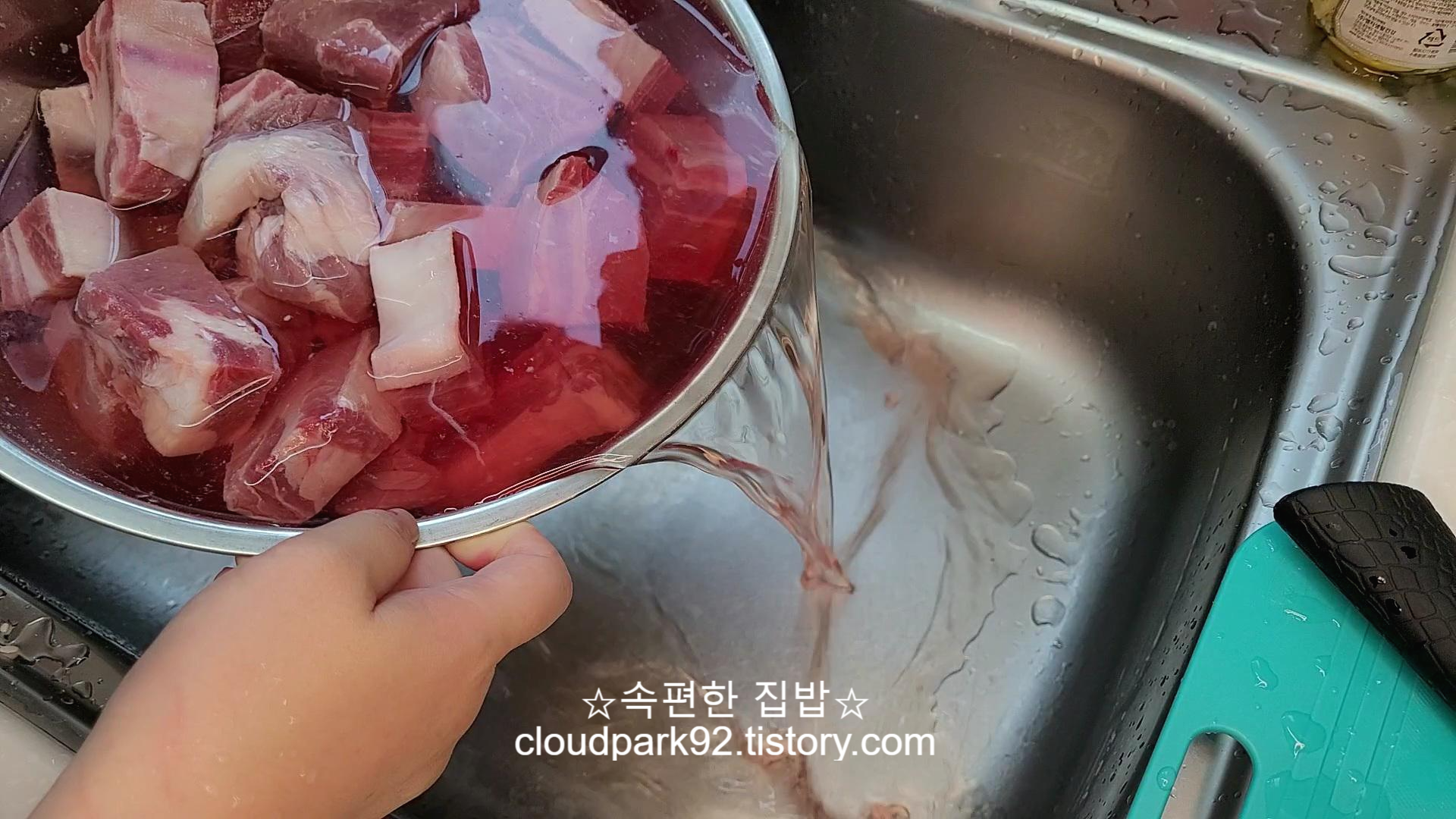 빨갛게 우러난 핏물은 버려주세요.