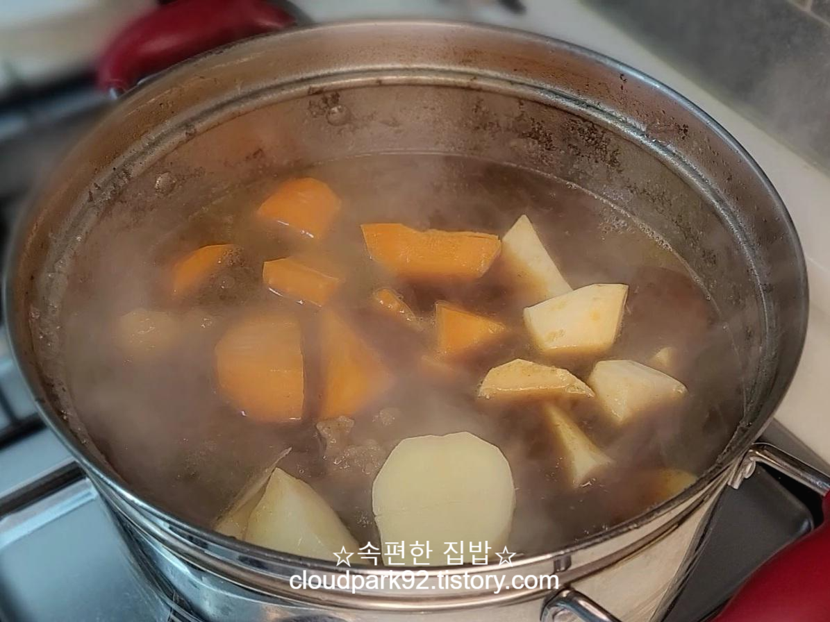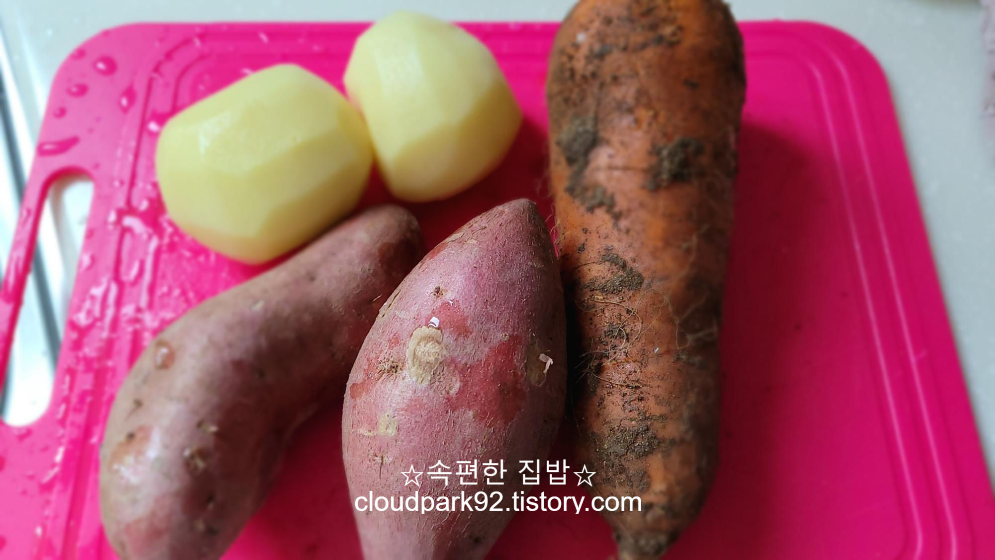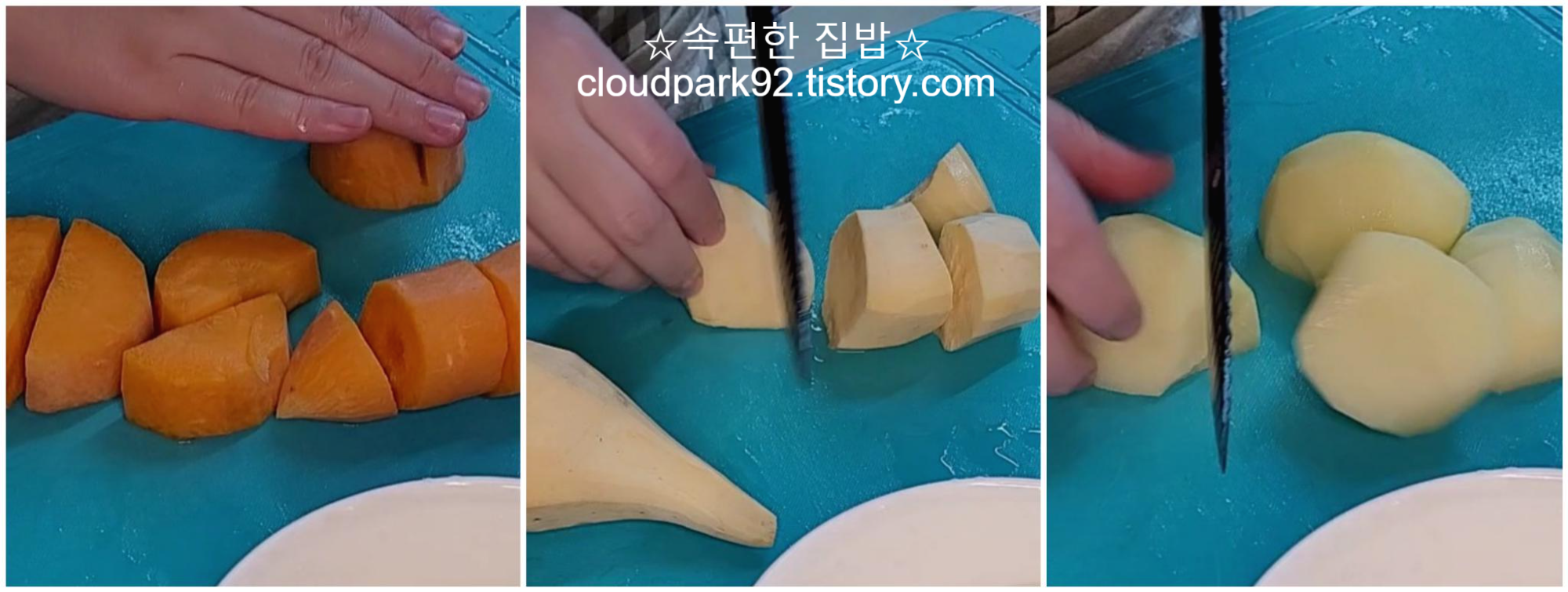 당근, 감자, 고구마는 큼직큼직하게 잘라주세요.