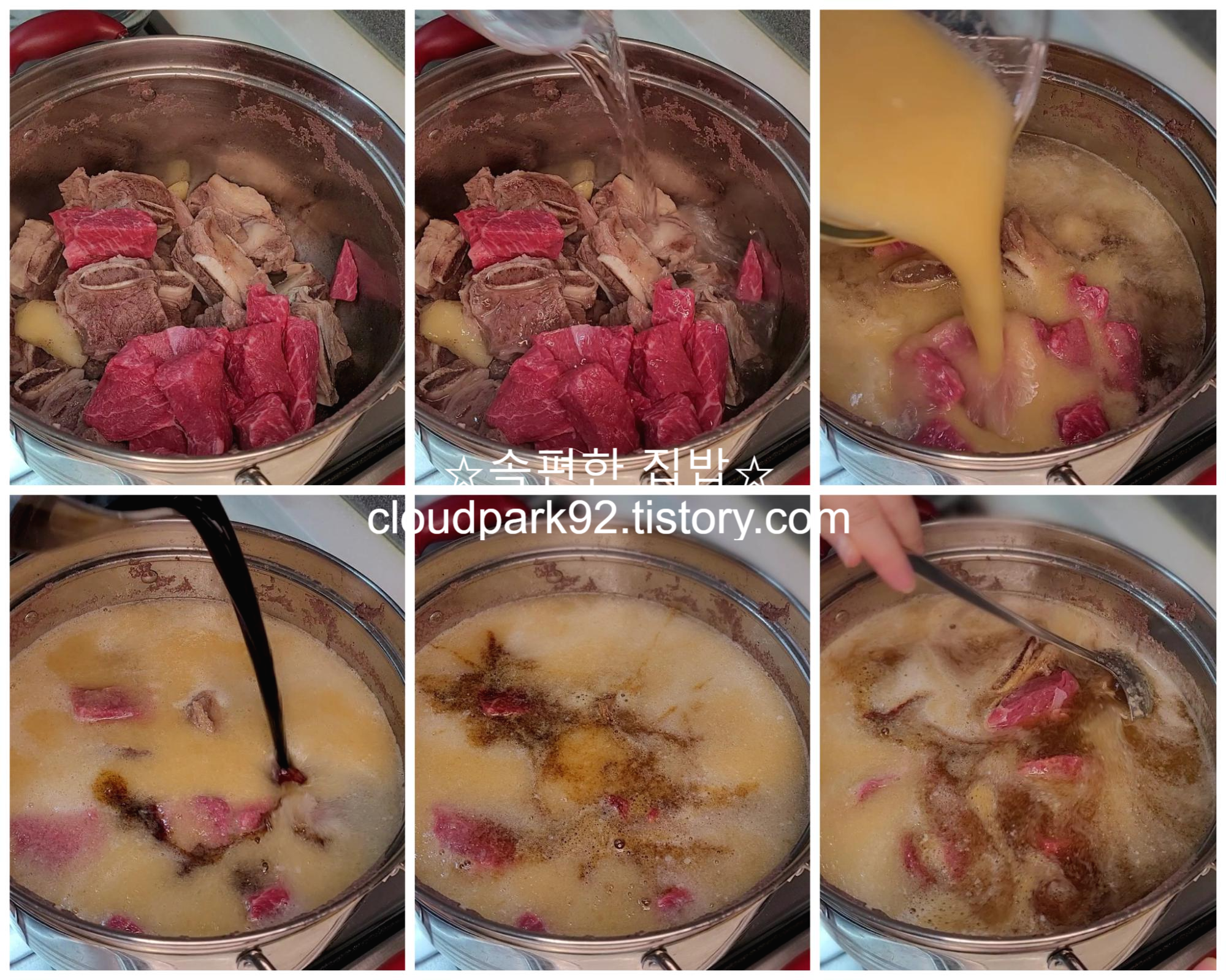 냄비에 한 번 데친 소갈비를 넣어주고,