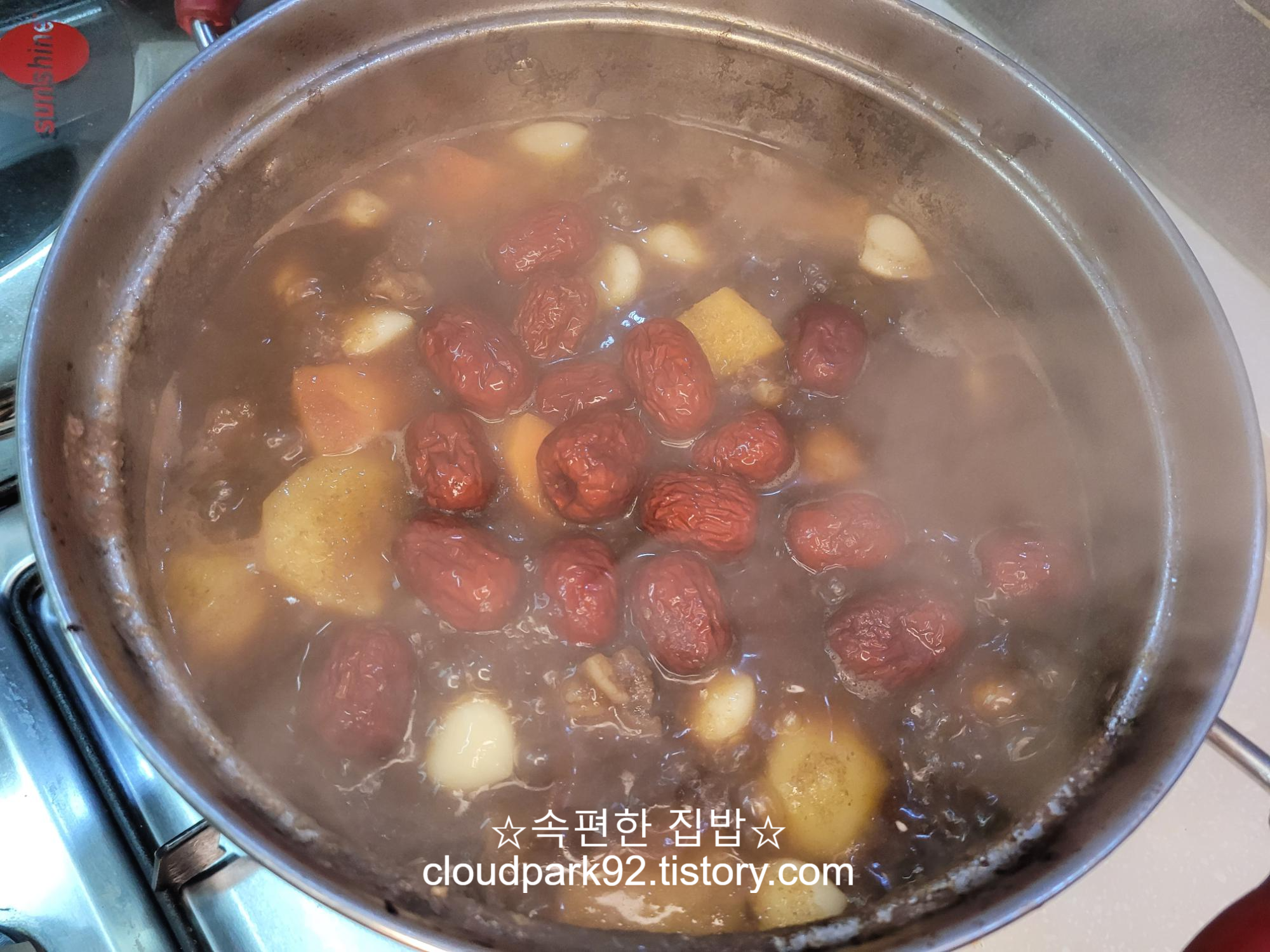 통마늘, 파, 양파, 밤, 대추, 표고버섯, 인삼(꿀 인삼)까지 재료가 좀 많죠?
