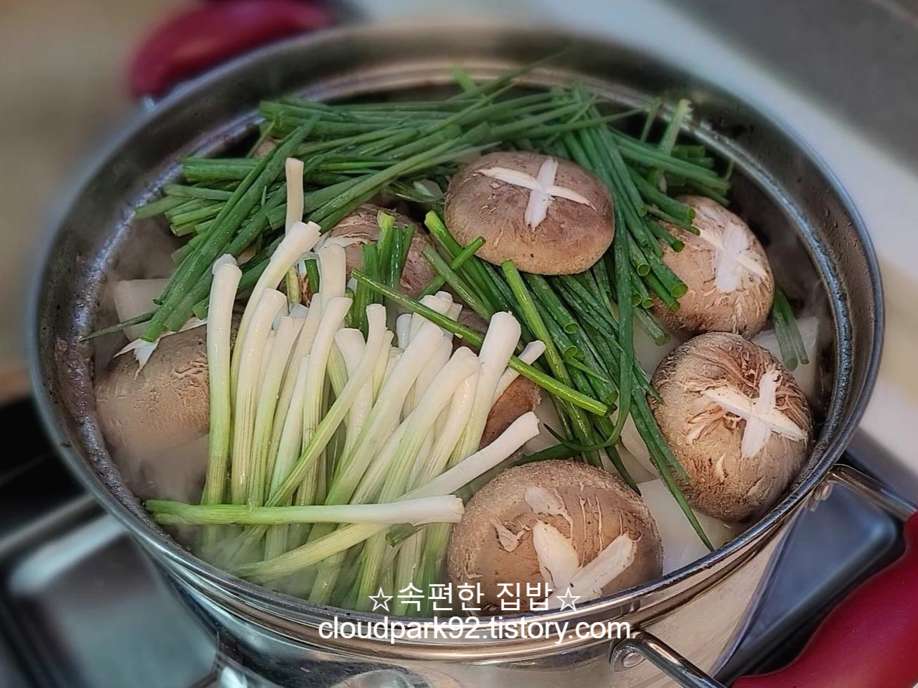 부재료를 너무 일찍 넣으면 부서져서 모양도 별로고 국물이 탁해져요.