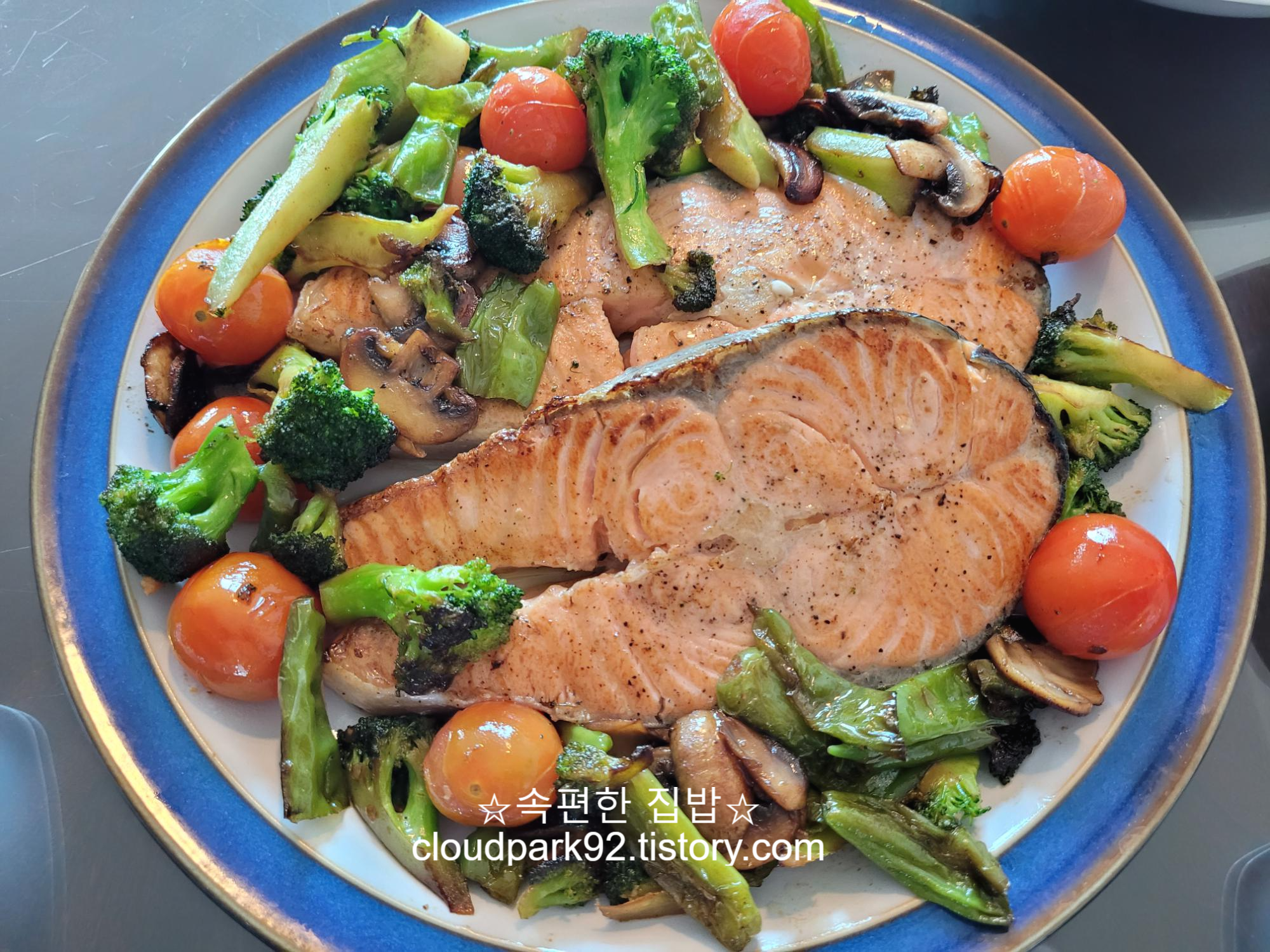 오늘 메인은 연어구이(연어스테이크)에요.