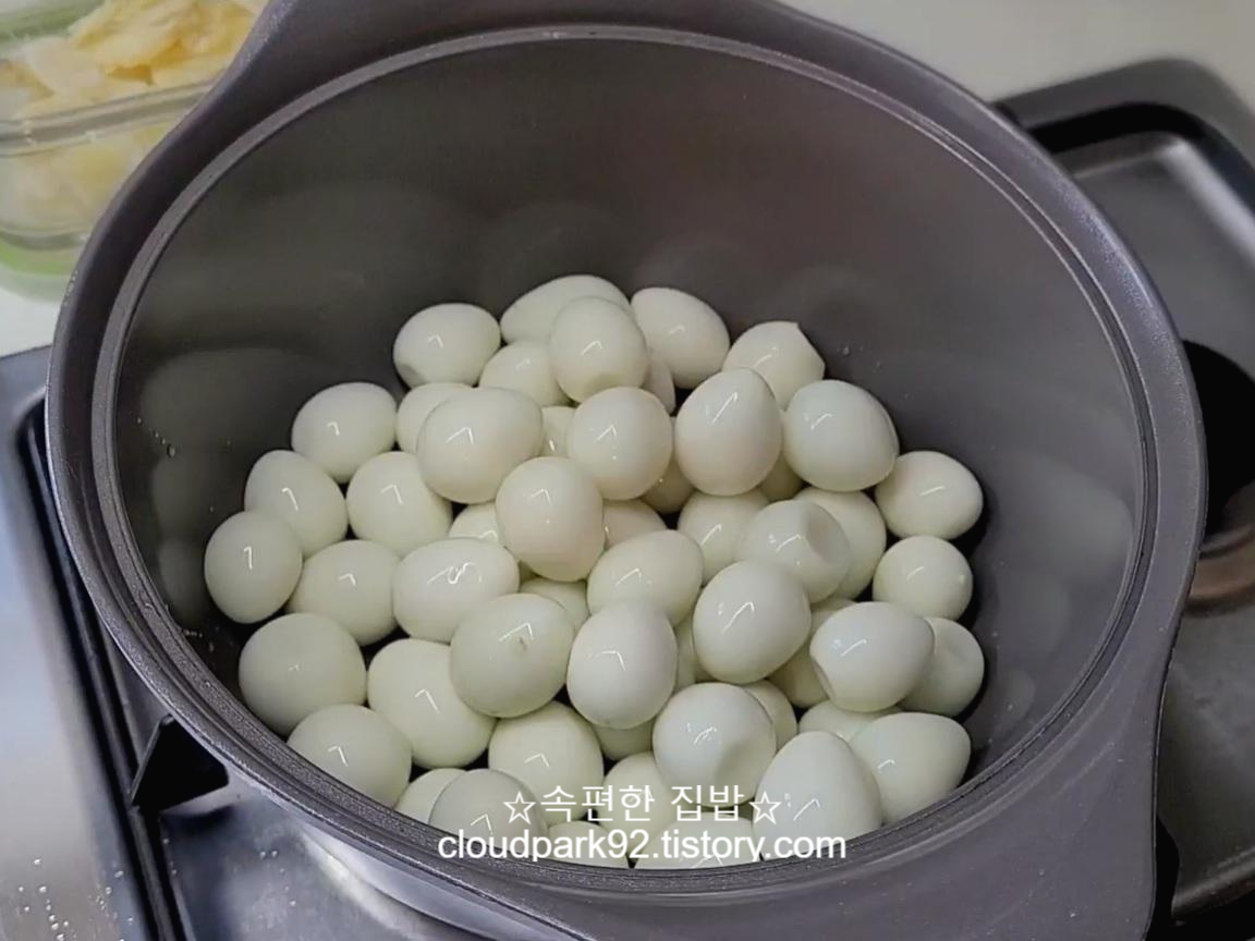 엄마랑 같이 살 때는 엄마는 항상 메추리알을 직접 삶으셔서 제가 엄마 옆에서 메추리알을 깠거든요