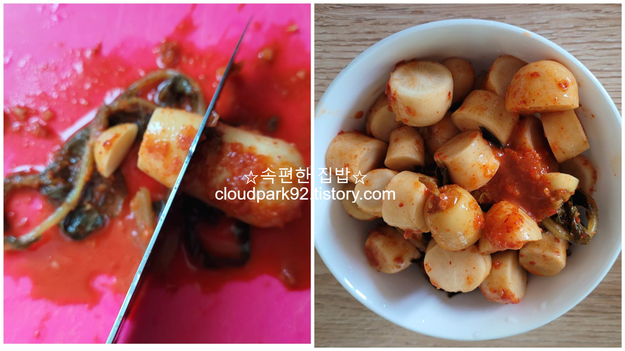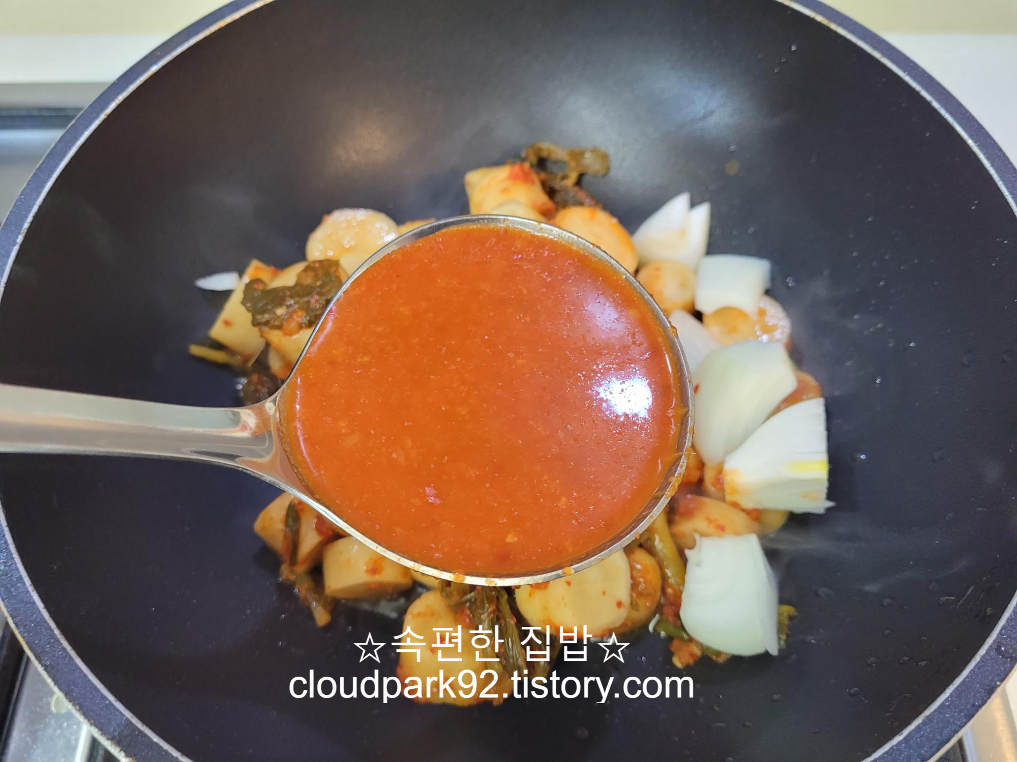 저는 총각무 김치 국물을 한 국자 넣었는데요