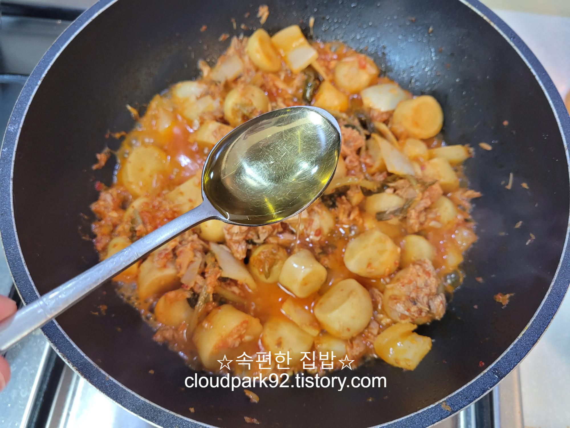참치를 넣고 볶을 거라 식용유만 사용했어요.