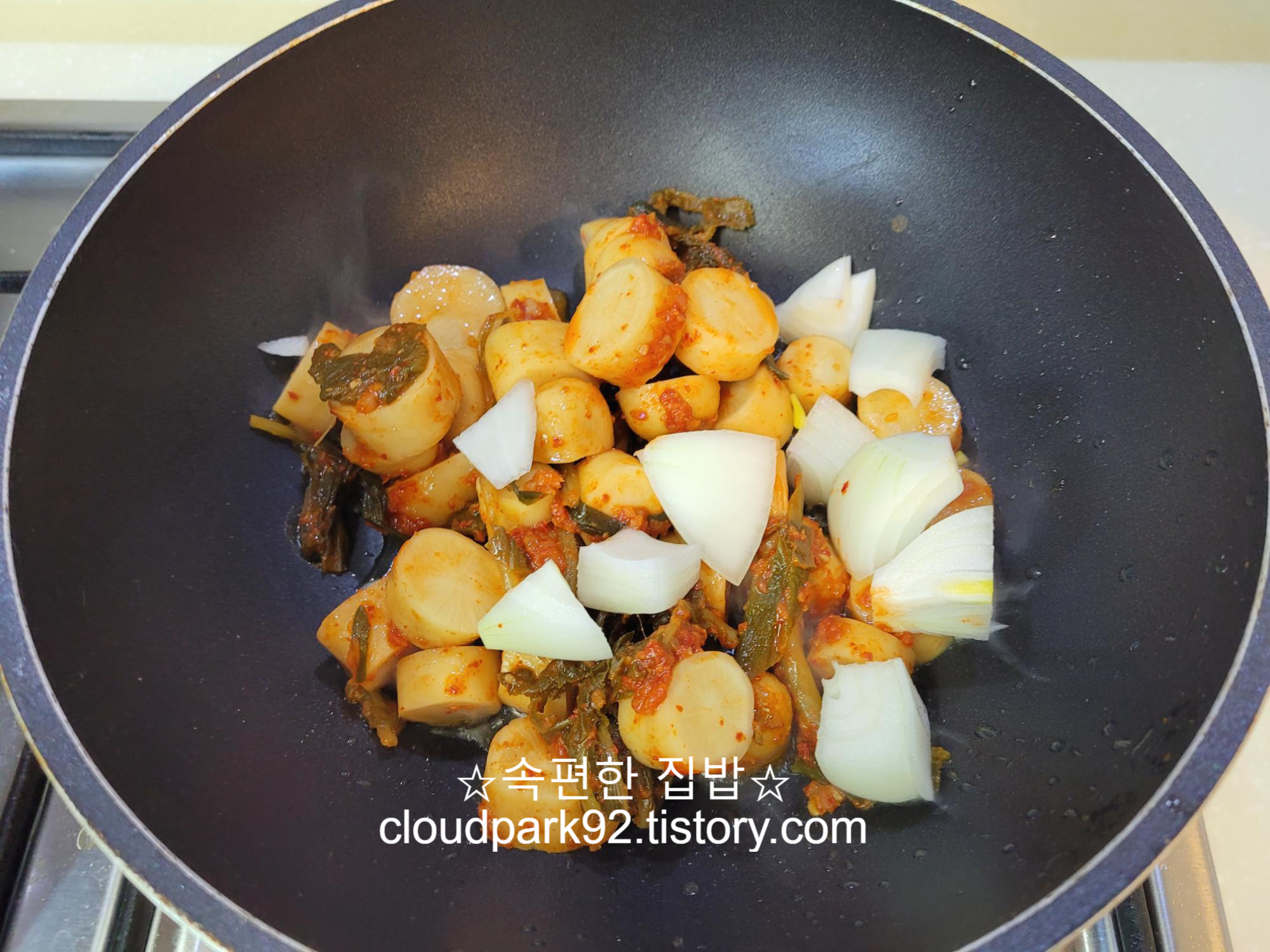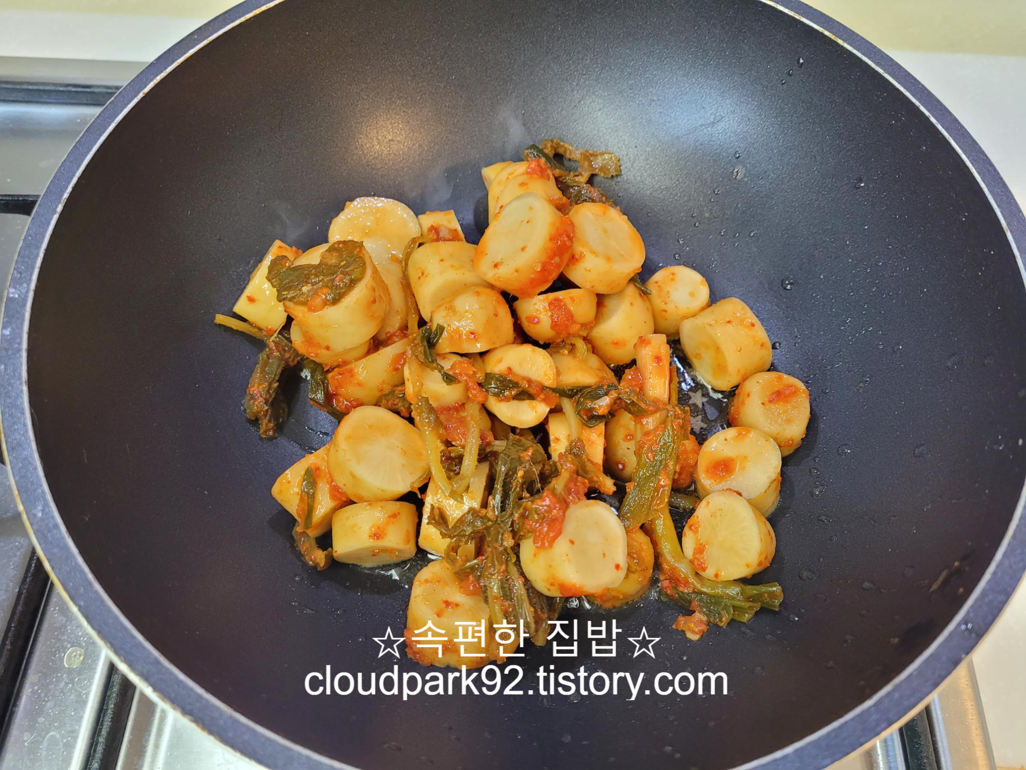 너무 익어 시큼한 총각무 김치를 이렇게 볶아 주면