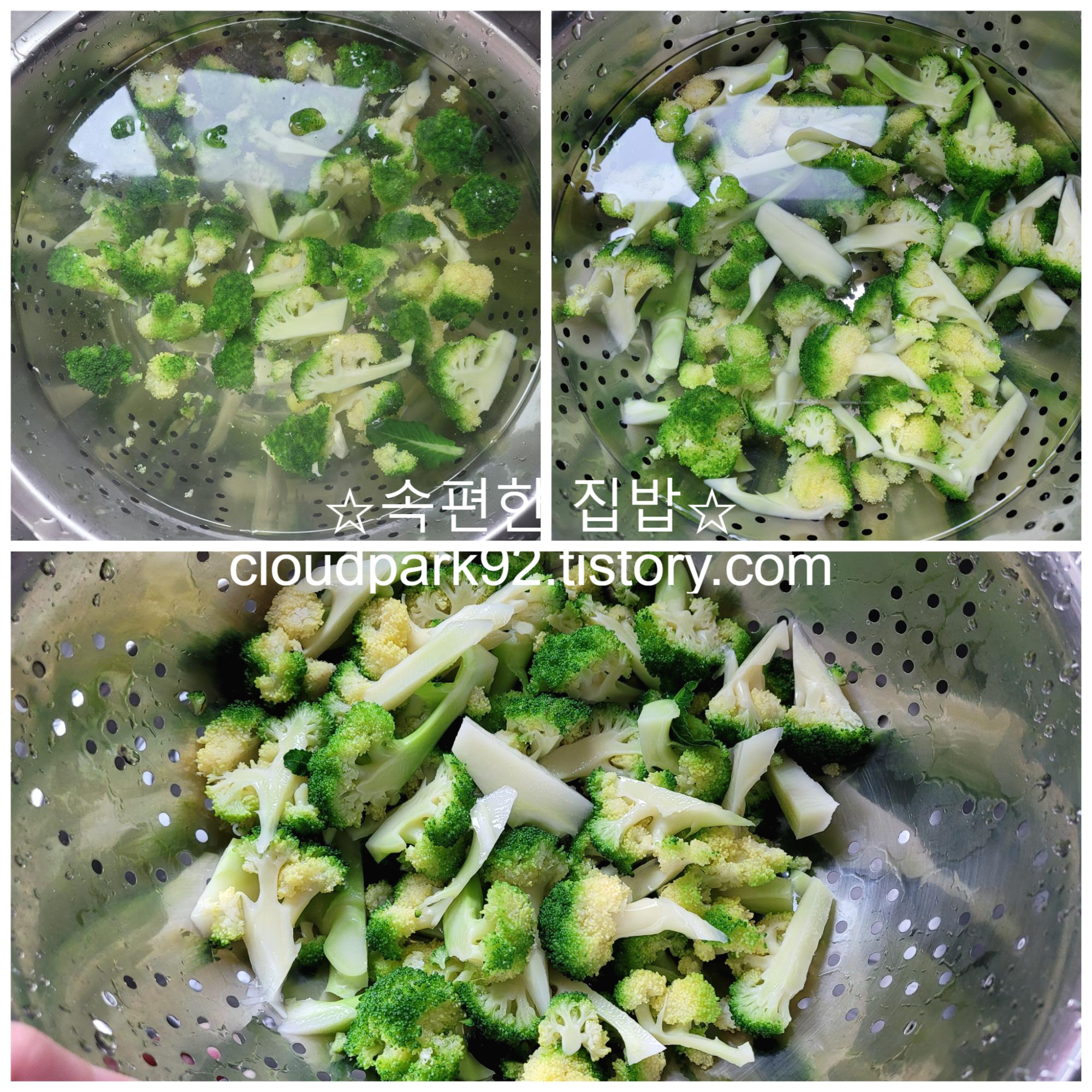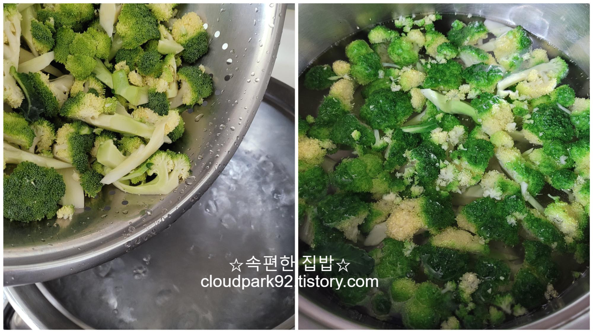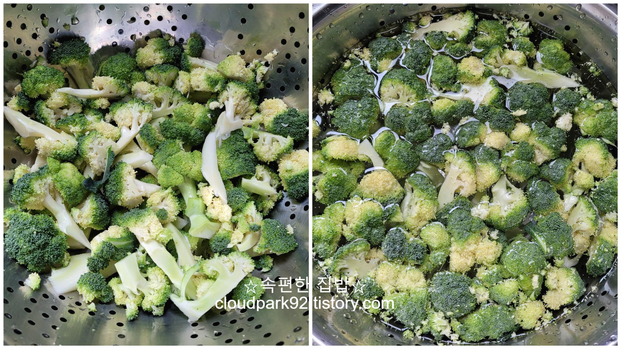브로콜리를 작게 잘라 주었기 때문에 2분 동안 데쳐 주었어요.