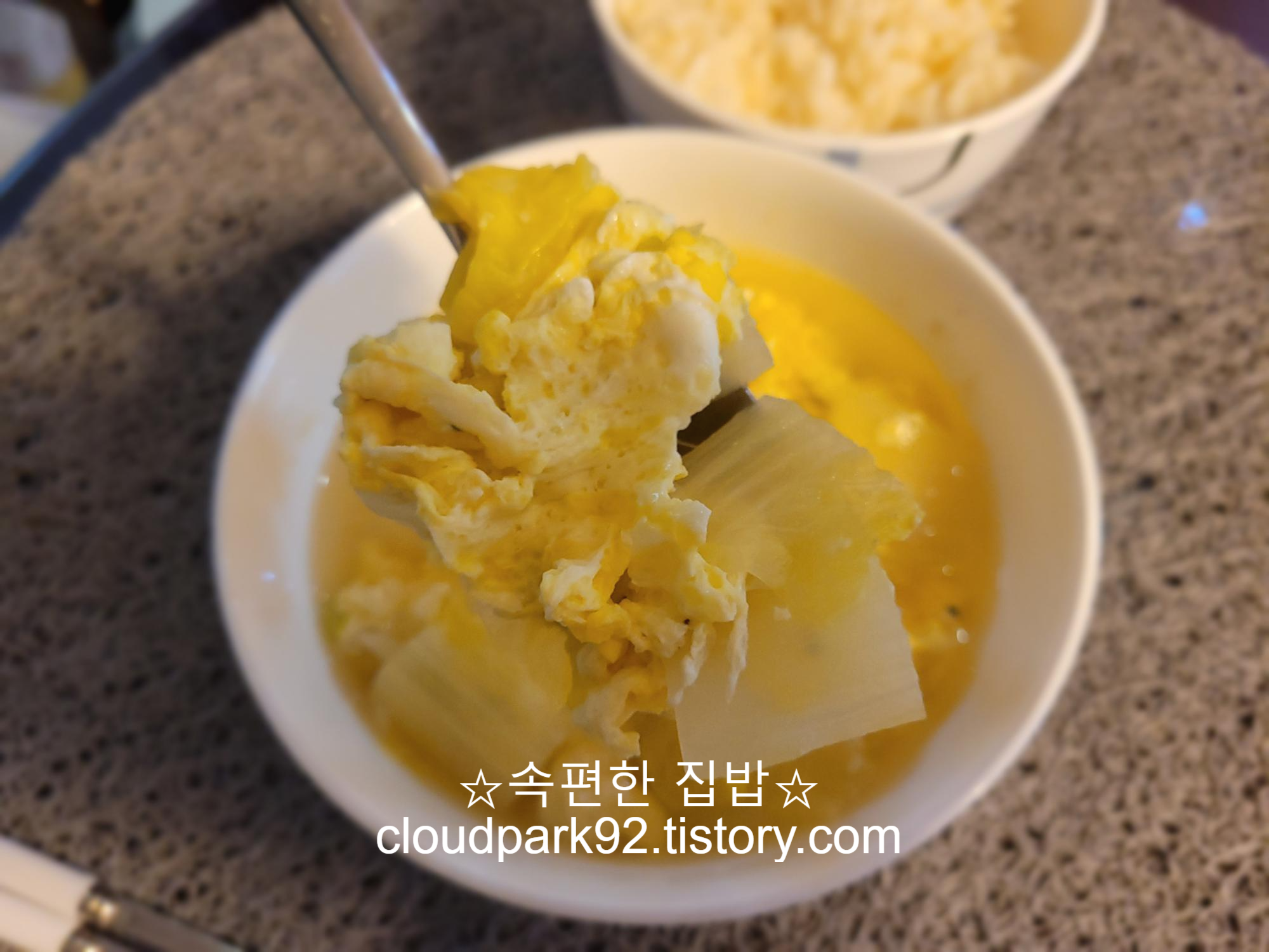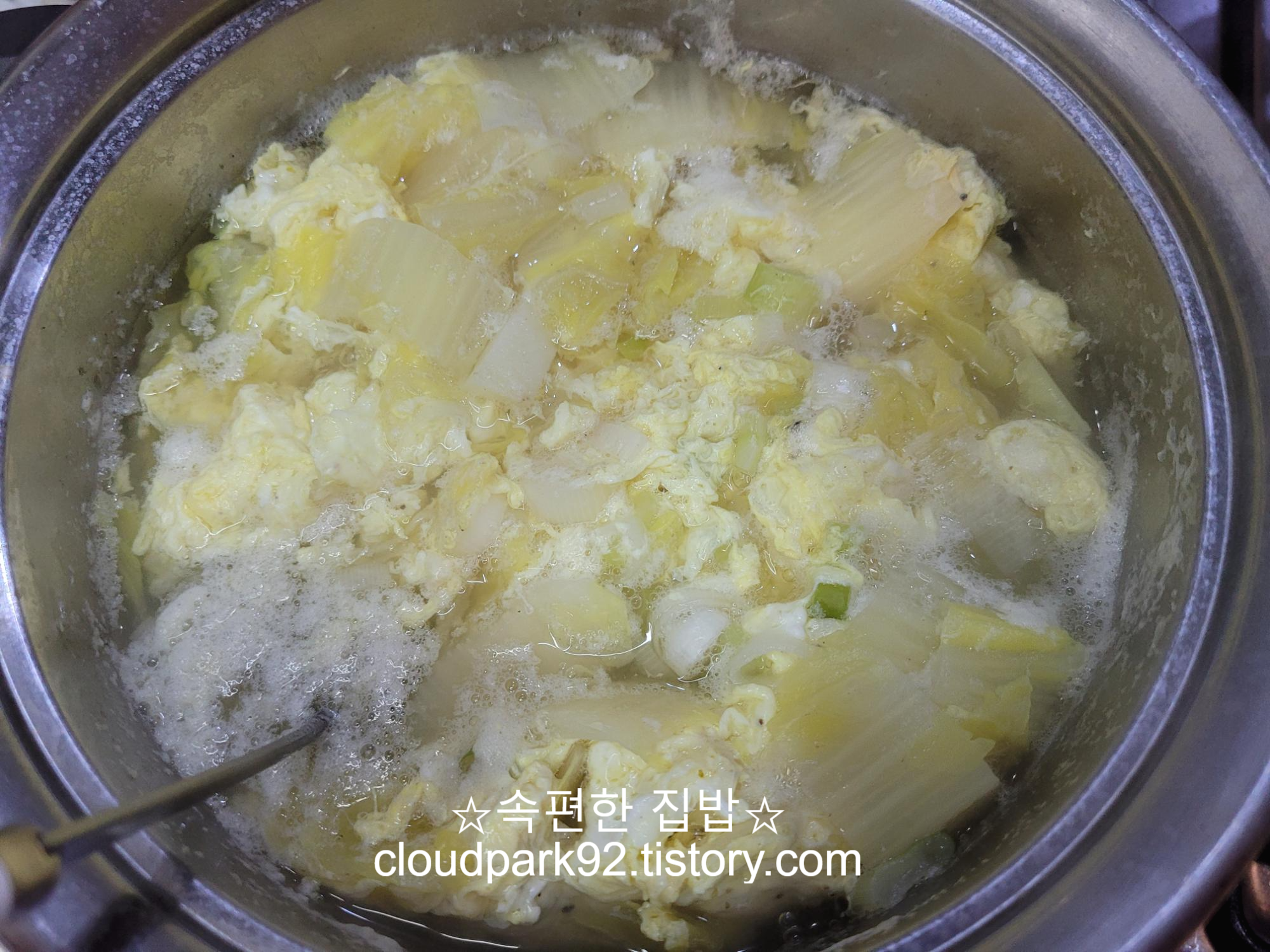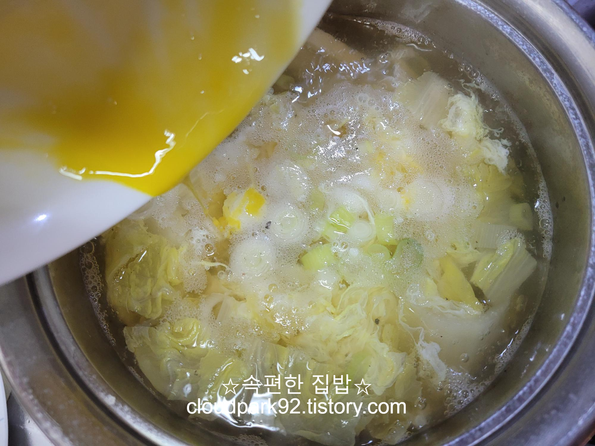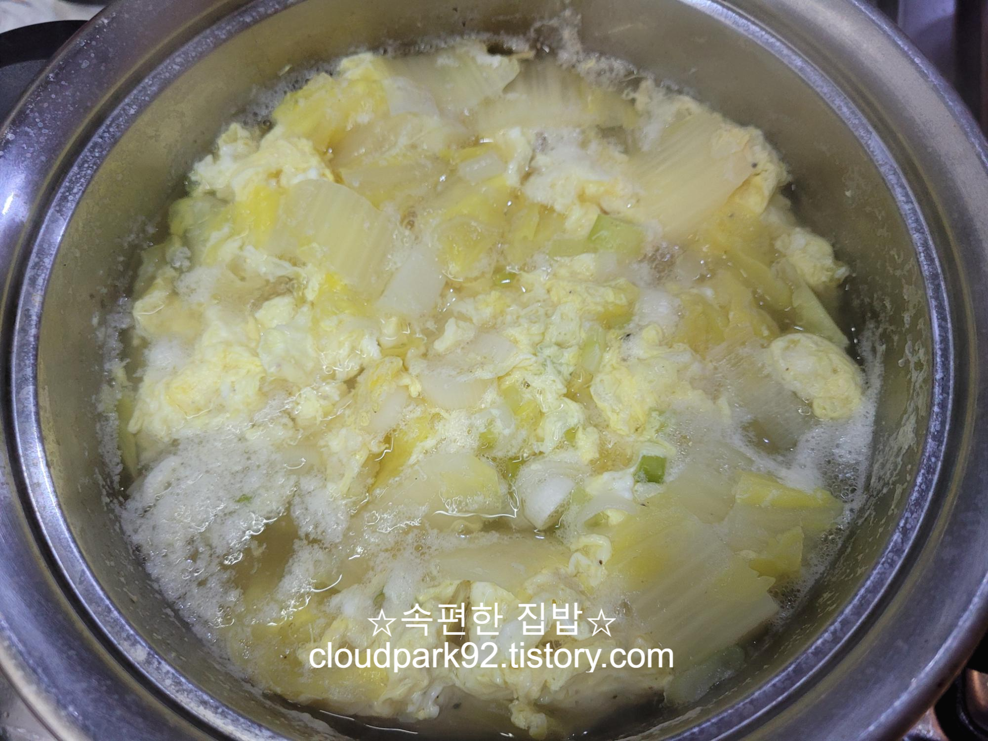 오늘 끓인 계란국은 평소 끓이던 계란국에 알배기 배추를 썰어 넣어