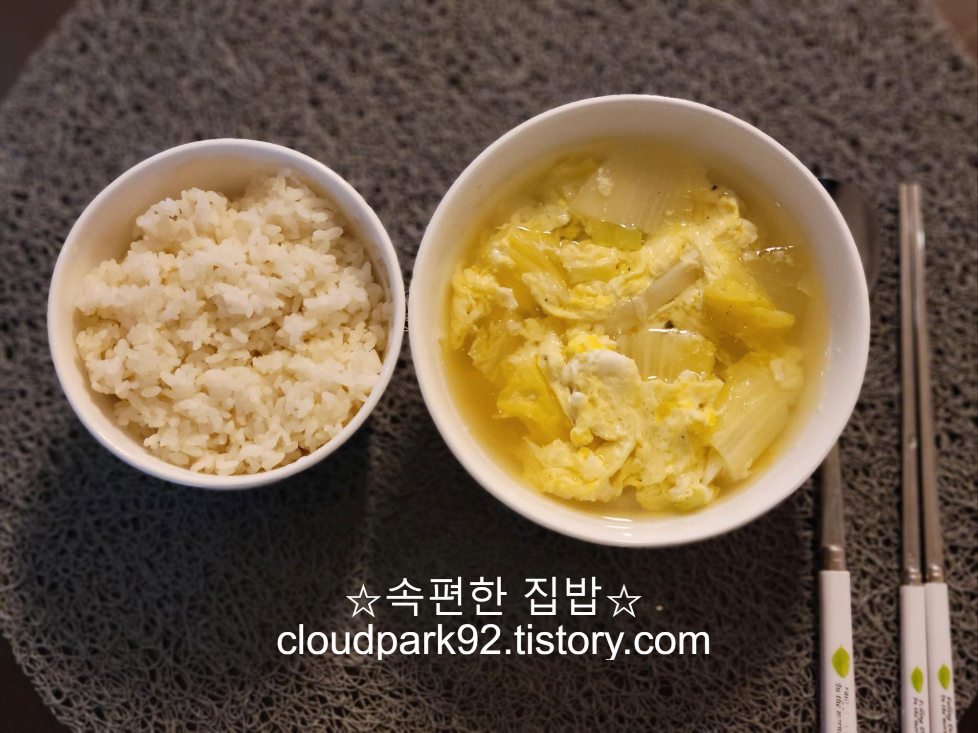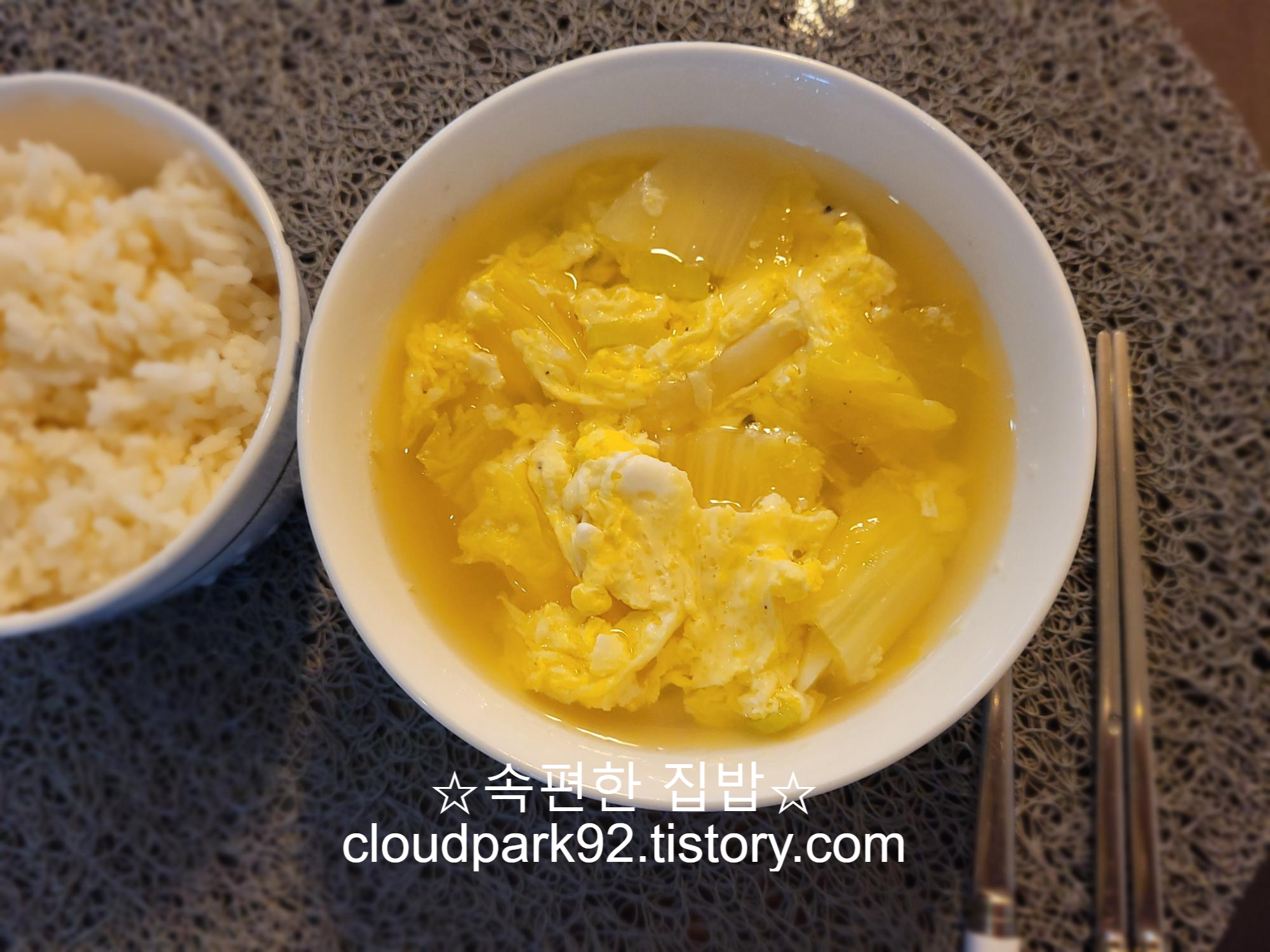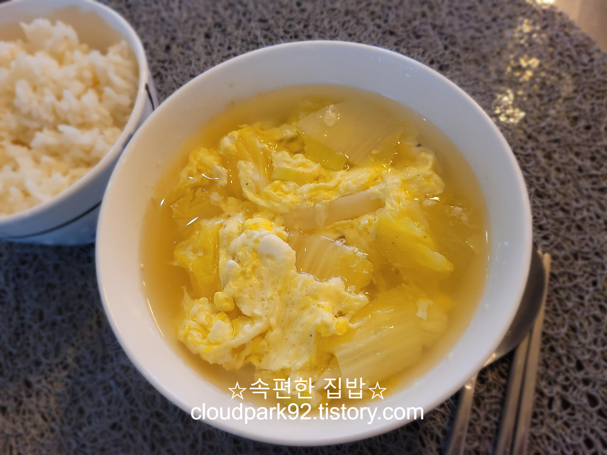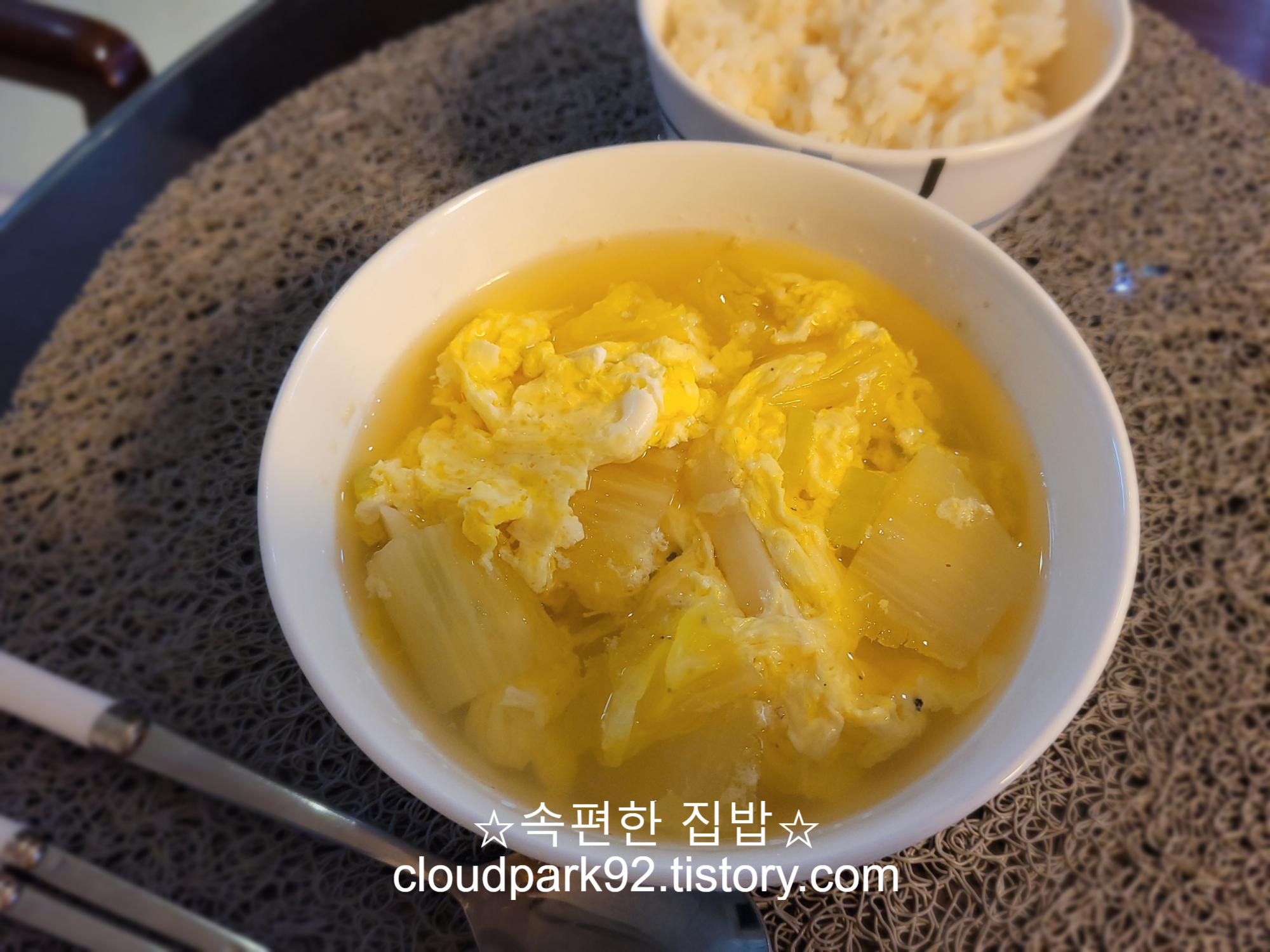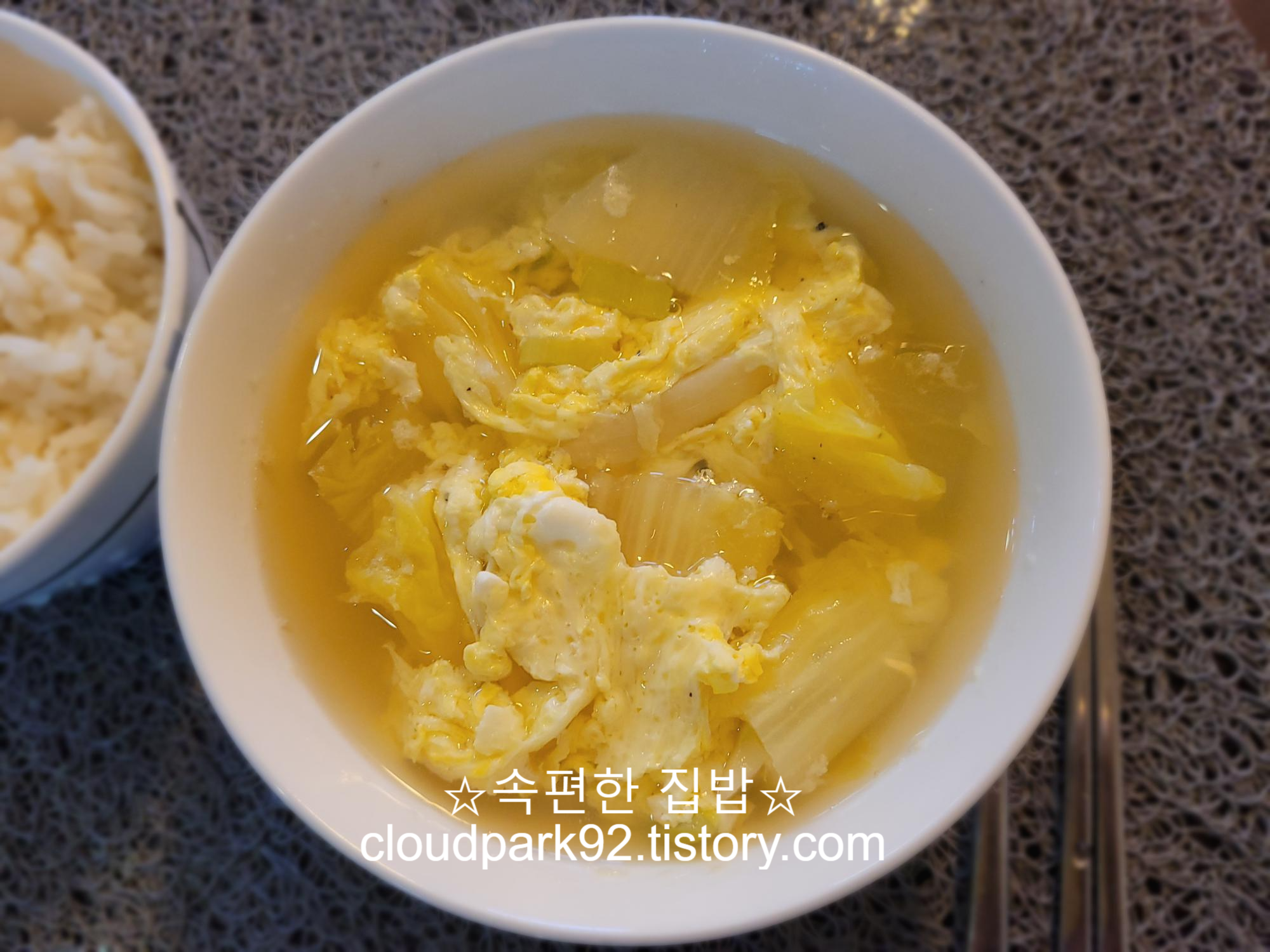 오늘 끓인 계란국은 평소 끓이던 계란국에 알배기 배추를 썰어 넣어
