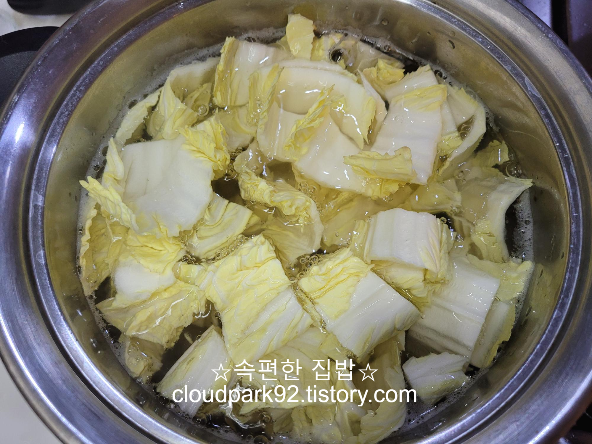 감자가 살짝 익으면 배추를 넣어 주세요.