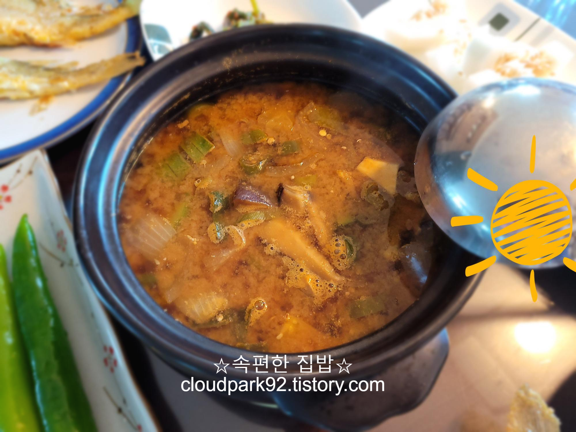 큼직큼직한 건더기가 들어있는 된장찌개를 끓여 주었어요.