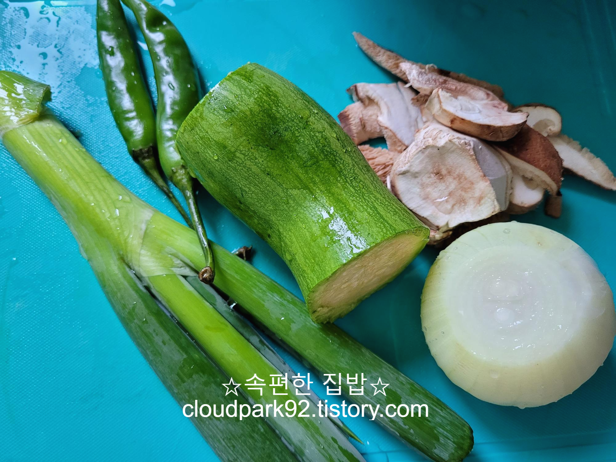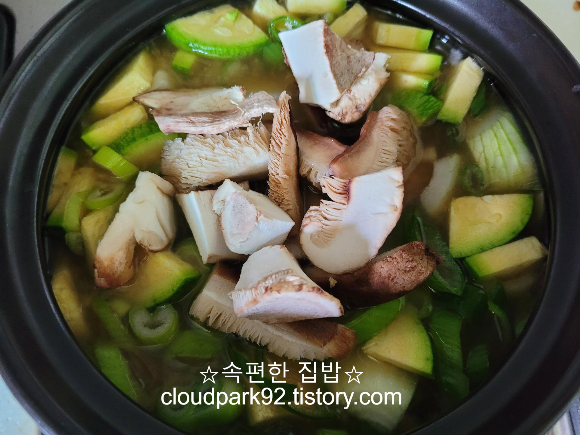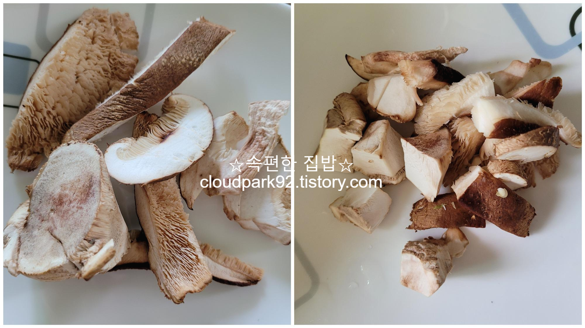 저는 문산 시장에서 버섯 살 때 사장님께서 덤으로 주신 버섯 자투리 남은 거 넣었어요.