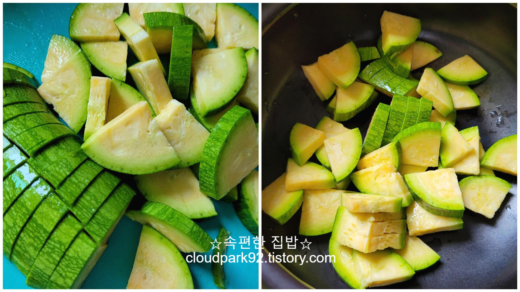 애호박과 비슷한 크기나 조금 큰 모양으로 잘라 주면 됩니다.