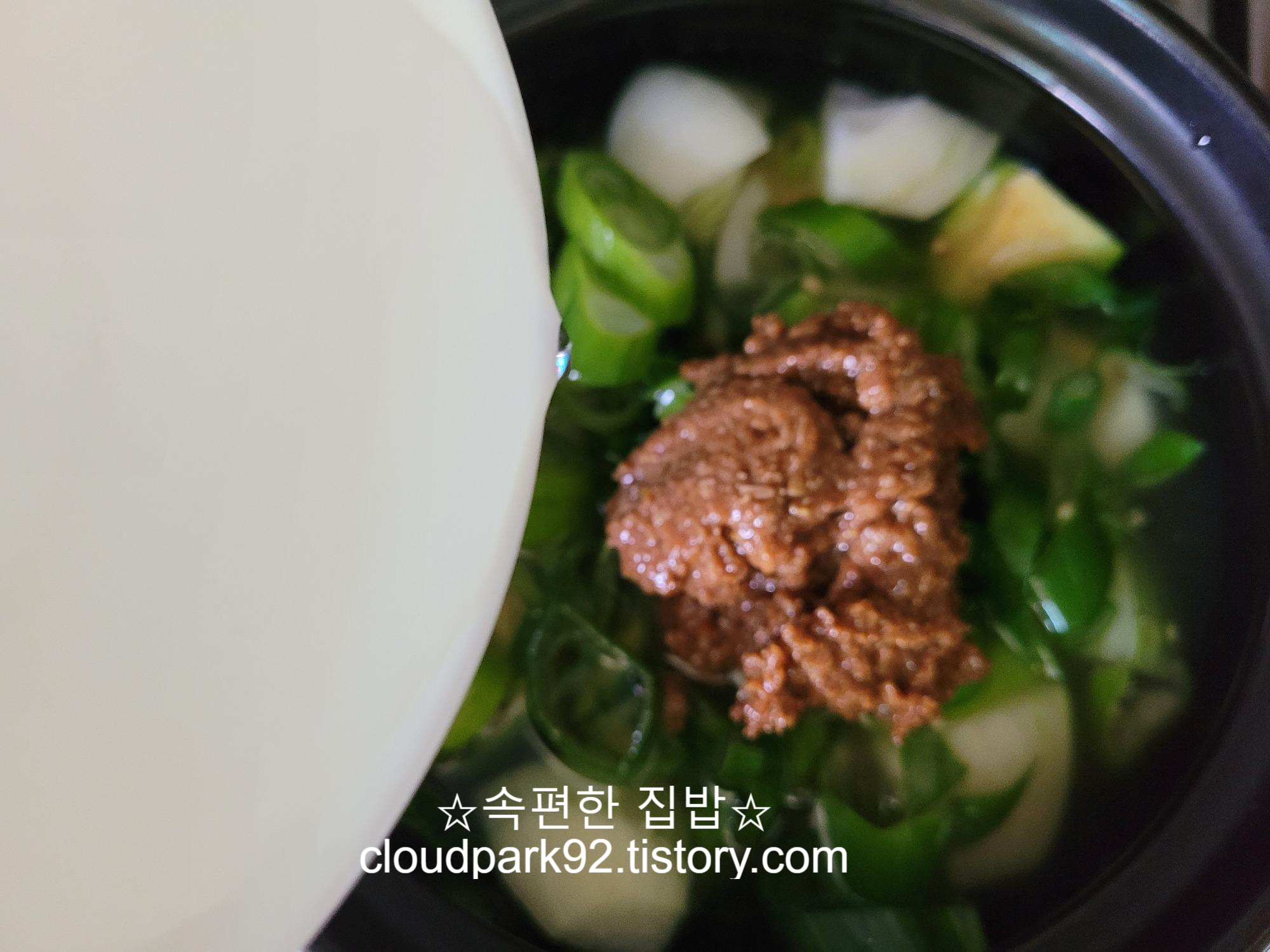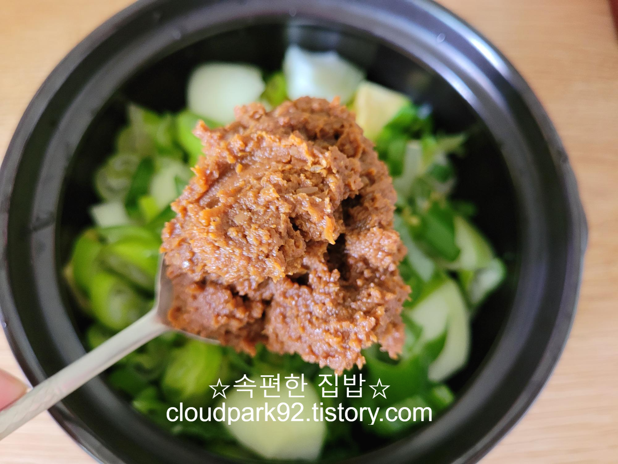 된장 크게 한 스푼(약 70그램) 넣어 주고요.