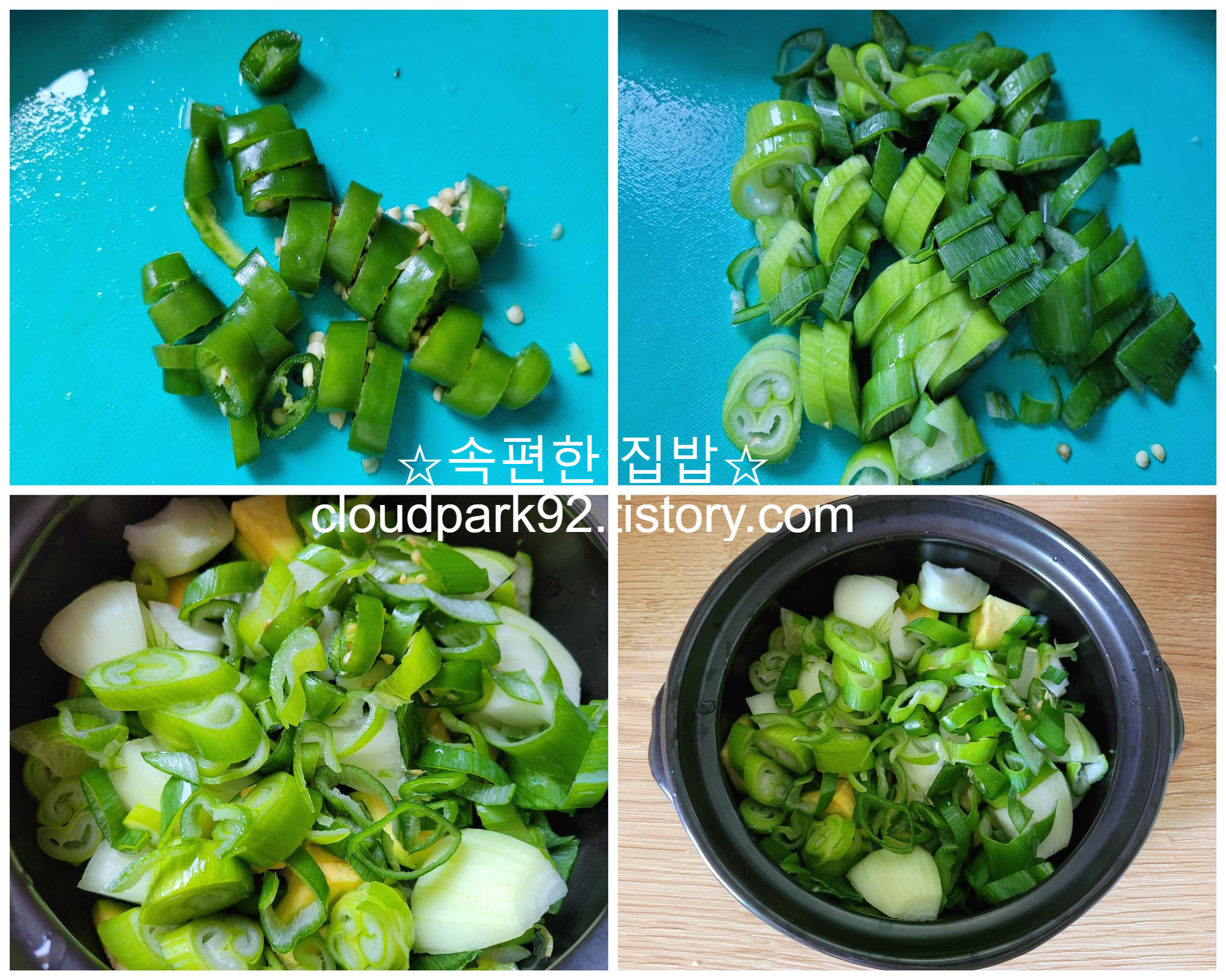 요즘 날이 더워 얼큰하게 먹으려고 청양고추 2개 넣었어요.