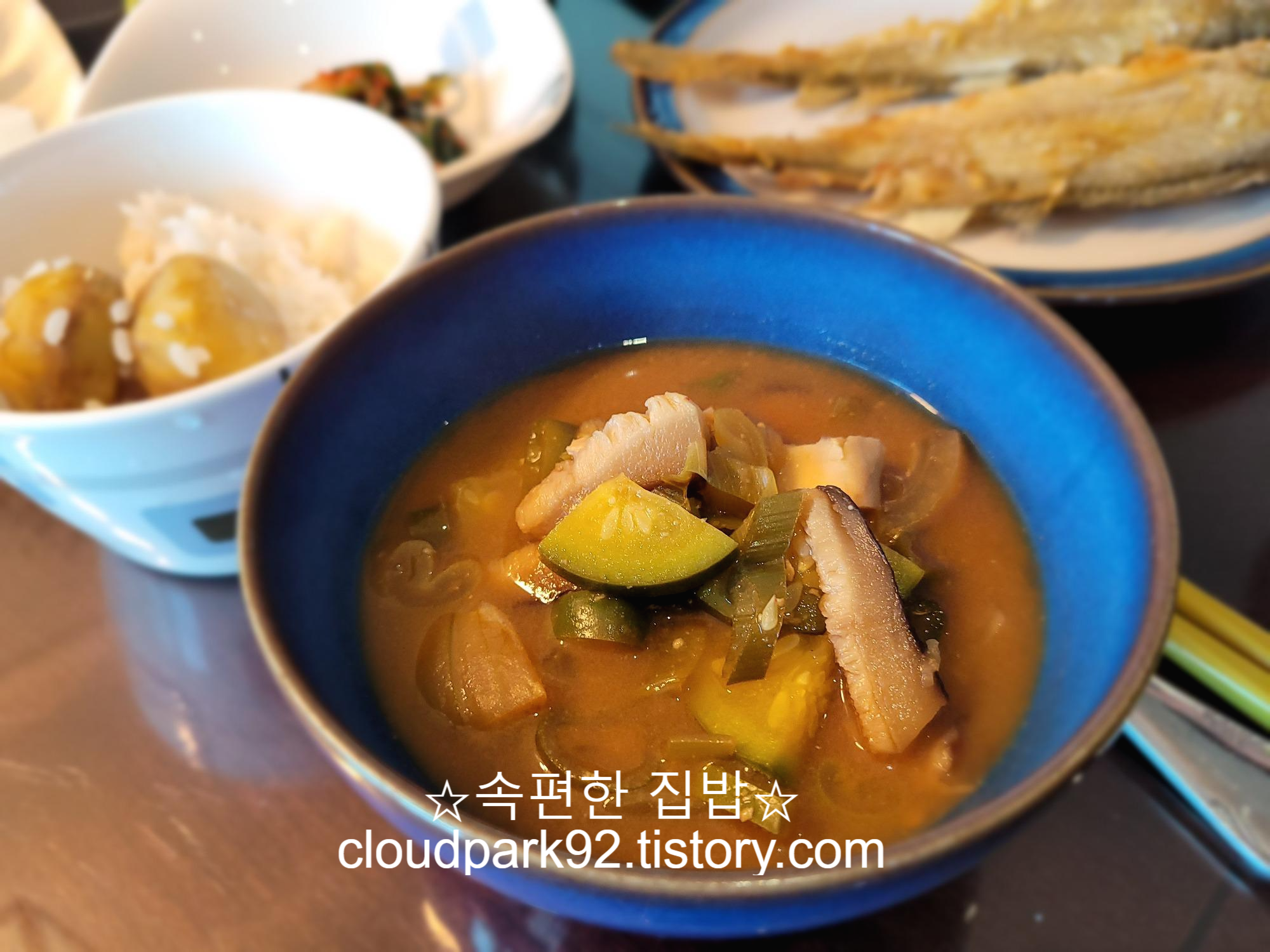 뜨거운 속을 달래줄 것 같아 애호박 된장찌개를 끓였습니다.