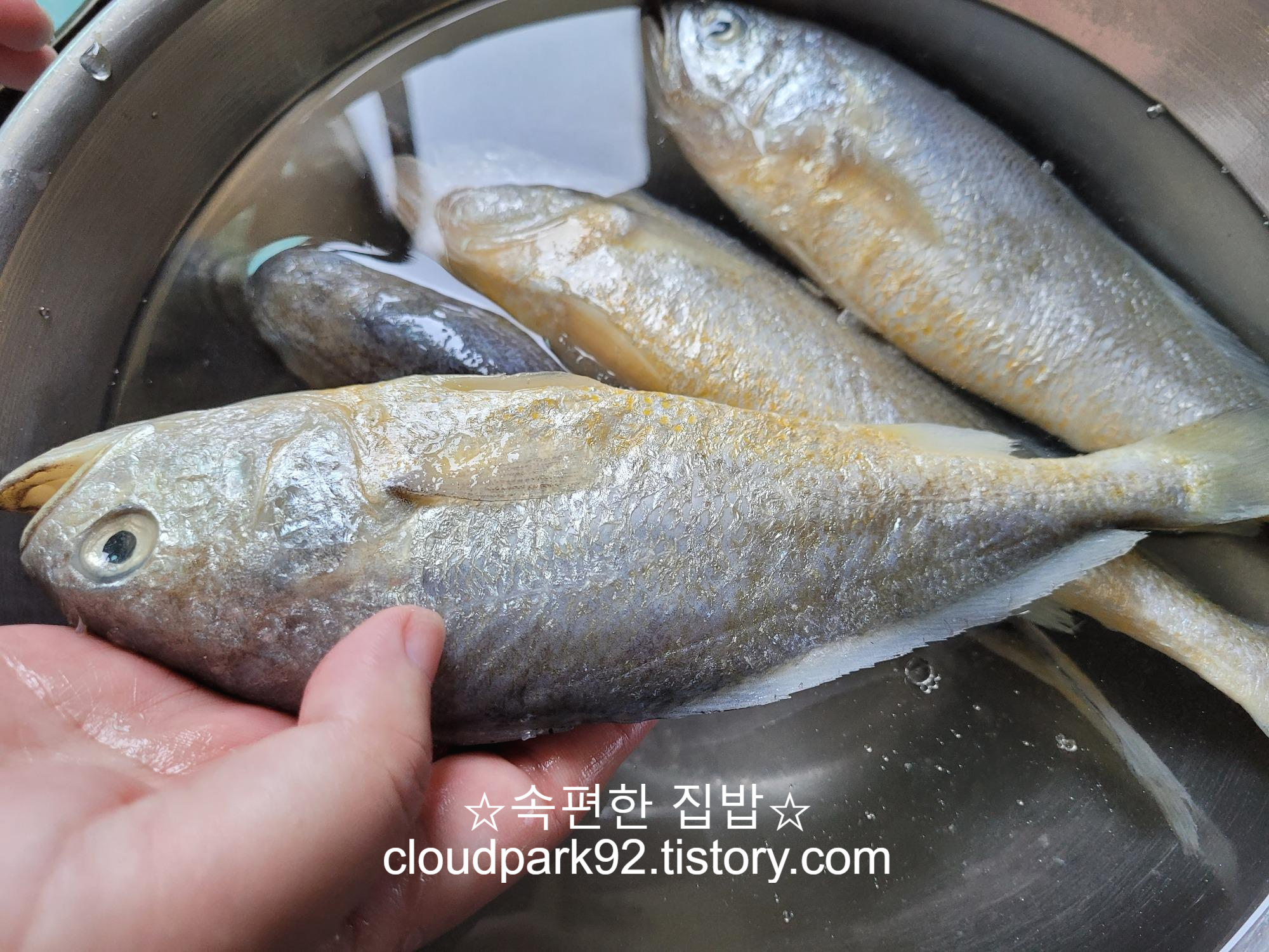 냉동 보관하던 조기를 찬물에 담가 해동한 후