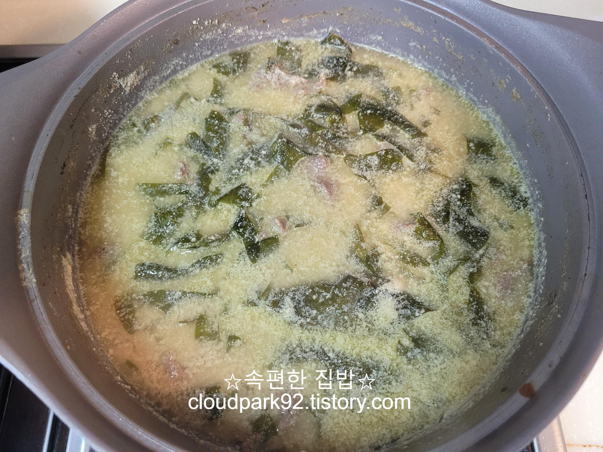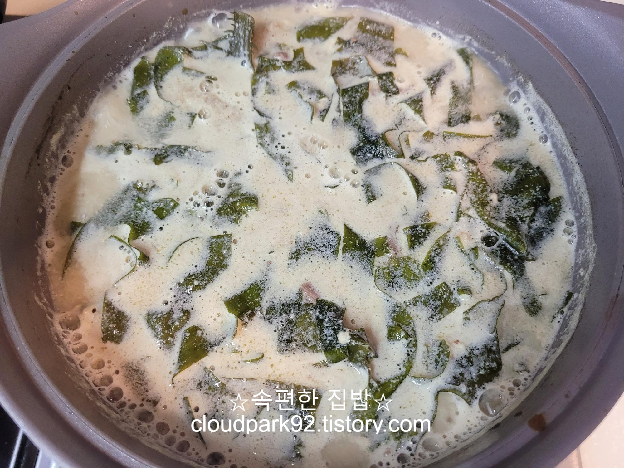 미역국을 좋아해서 평소에는 큰 냄비에 넉넉하게 끓여 여러 번 데워 먹지만