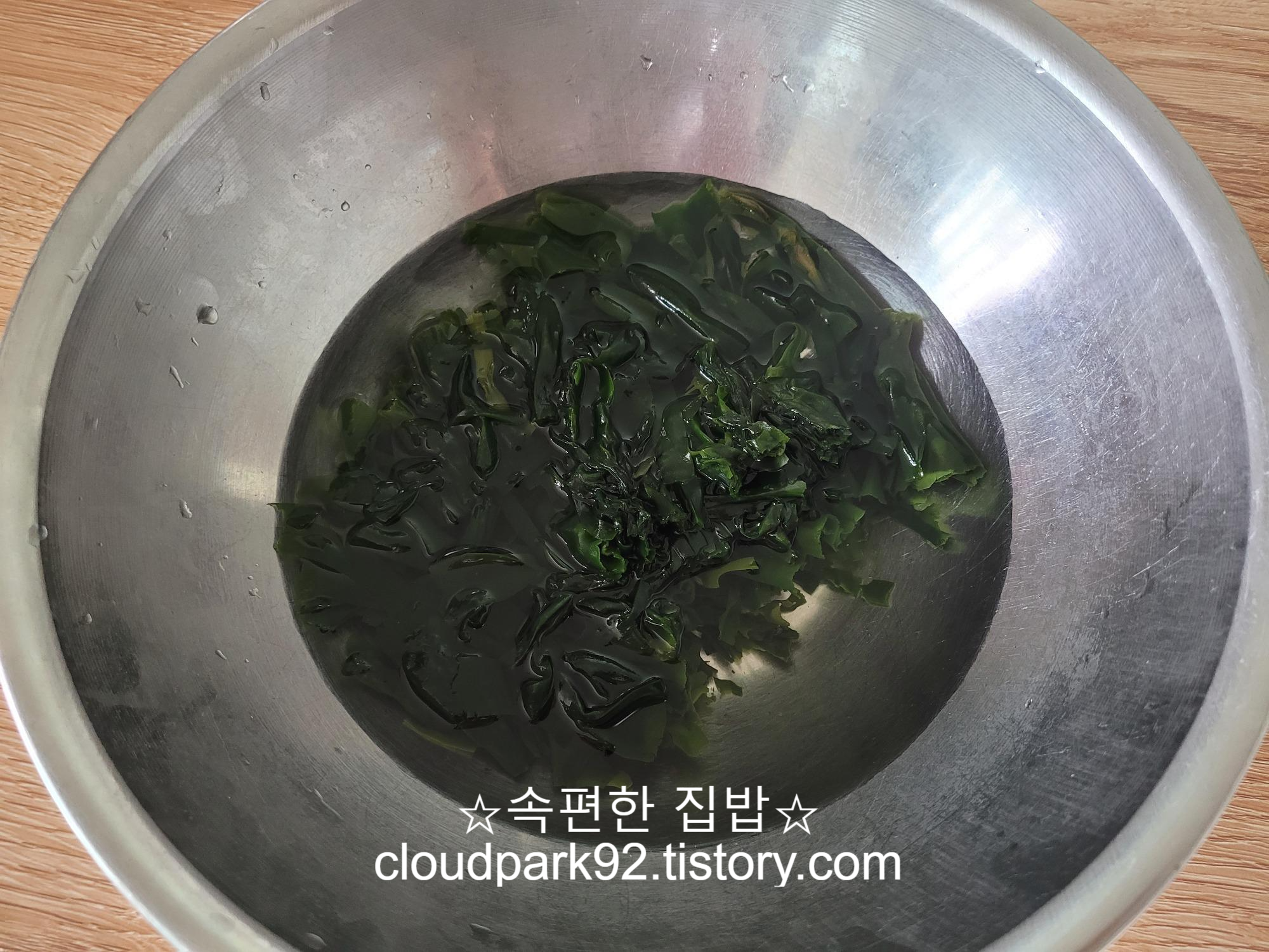 미역을 물에 불려주세요.