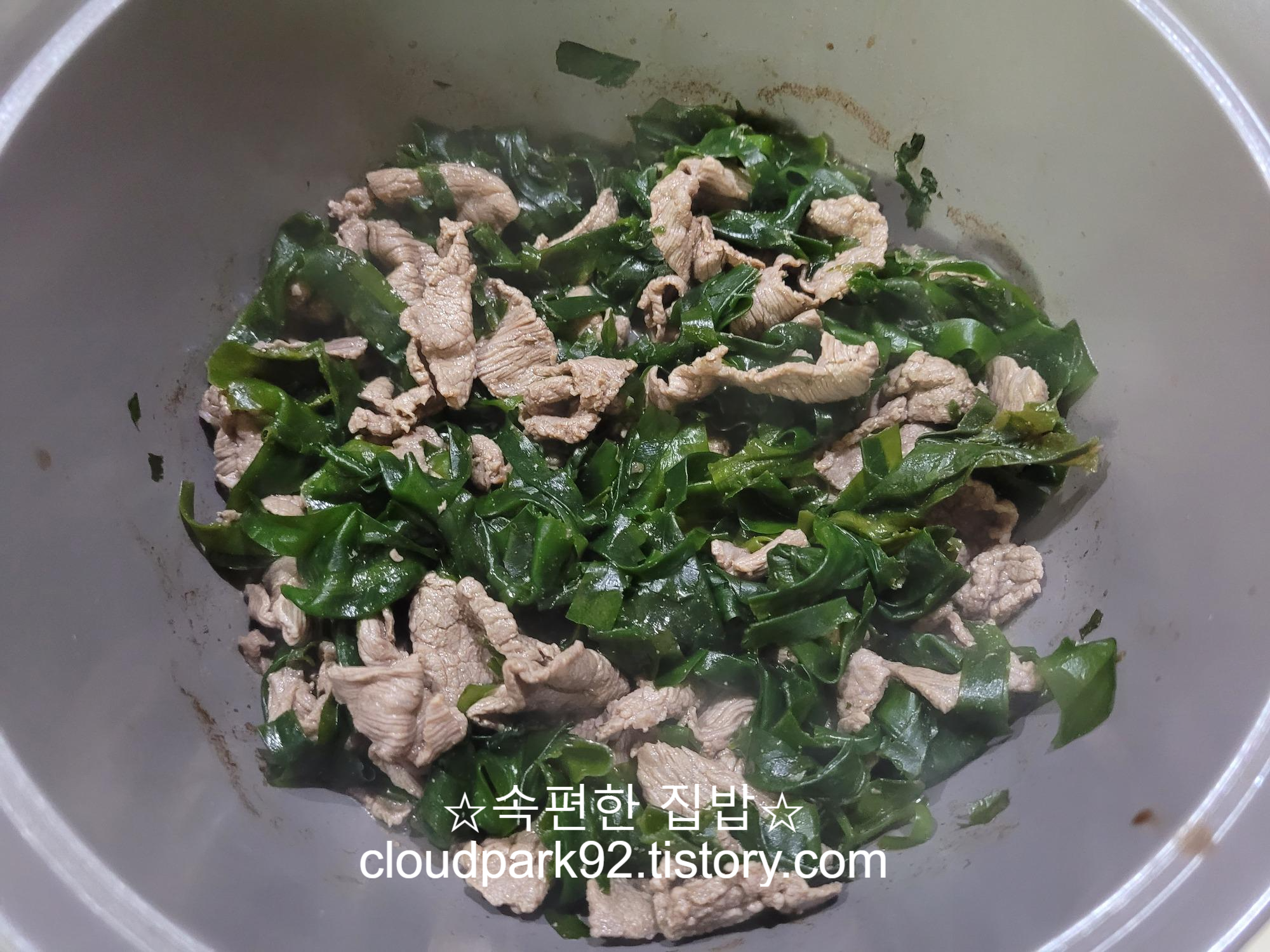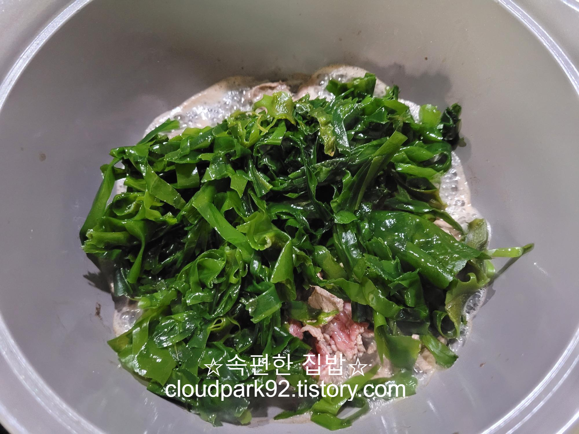 불린 미역 넣고