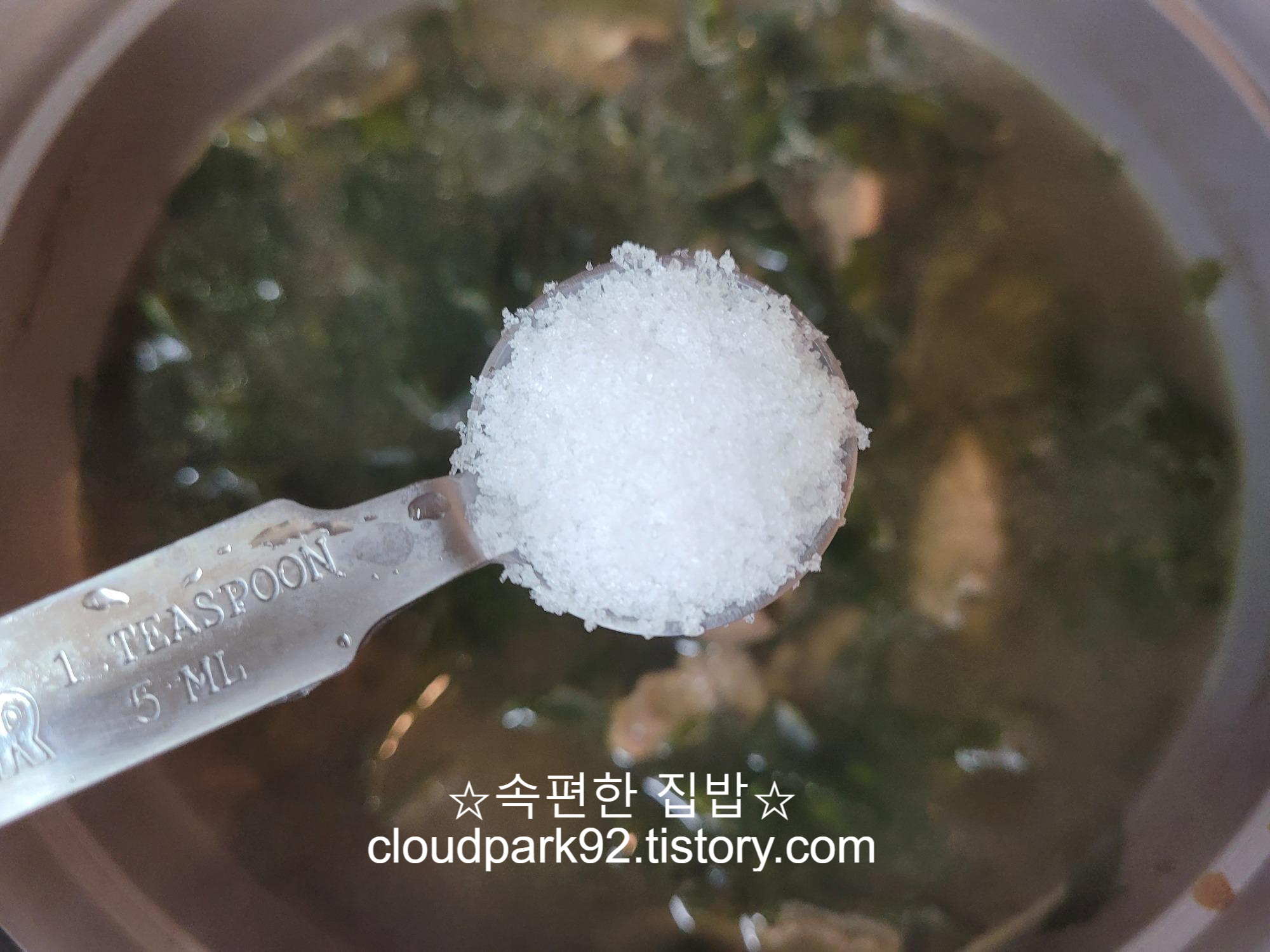 굵은소금(천일염) 1 tsp 넣고요.